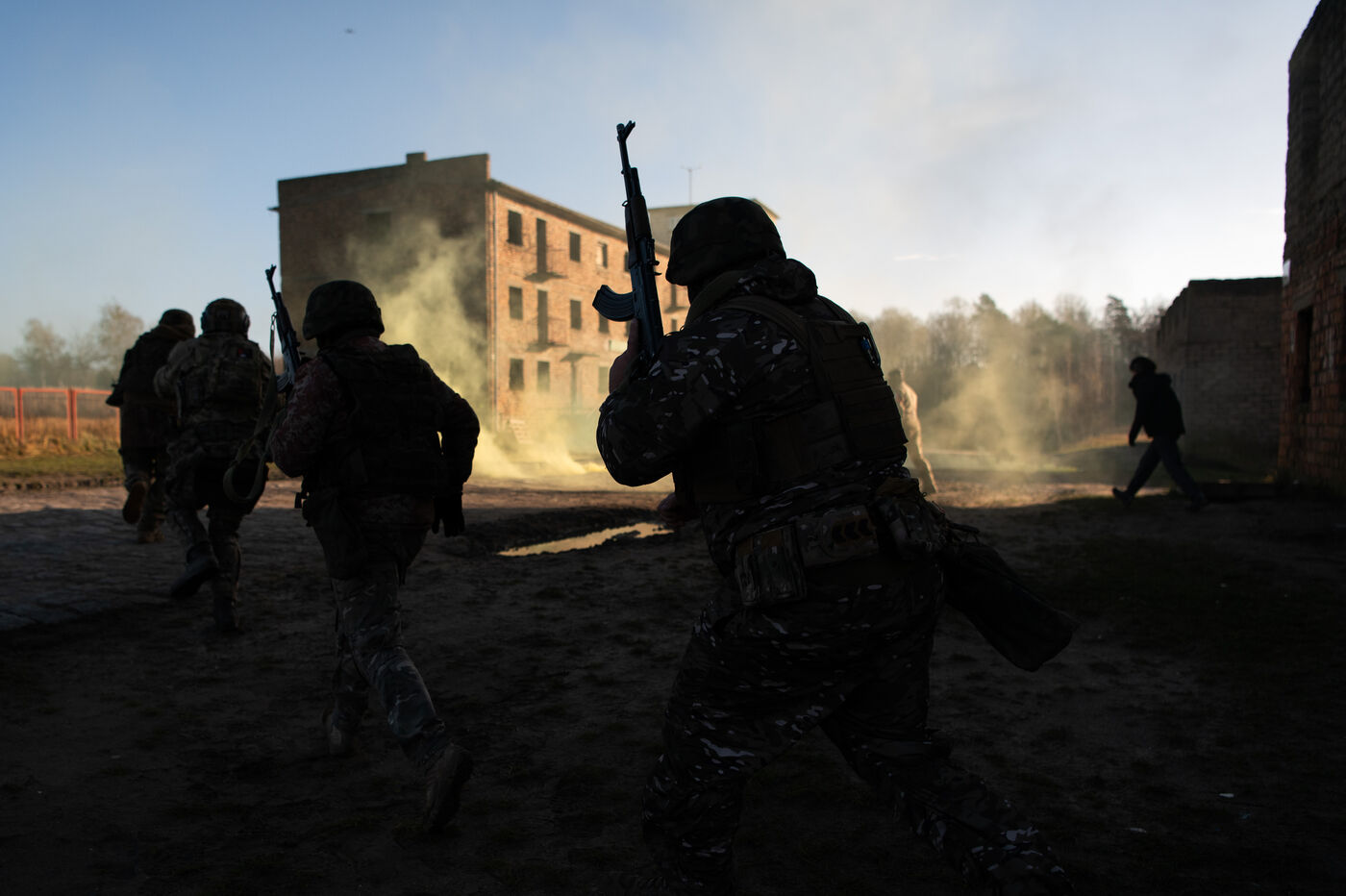 In the immensity of the Polish forests, Ukrainian soldiers are preparing themselves, overshadowed by a conflict that continues to reshape their lives. Since 2022, the European assistance mission EUMAM has supported and trained tens of thousands of Ukrainian soldiers. This report tells a story that can only be shown in fragments. Here, the protection of individuals is paramount, imposing itself as an editorial constraint in its own right: faces are concealed, no equipment is shown, and no locations are precisely identified. Secrecy becomes the very substance of the report, a story made up of light and shadow, silhouettes, movements, sensations, suspended gestures. These images show what can be shown. The rest remains off-screen. Just like the invisible traces of war, those that reside in the heart of the human being and constitute an impenetrable shadow zone.