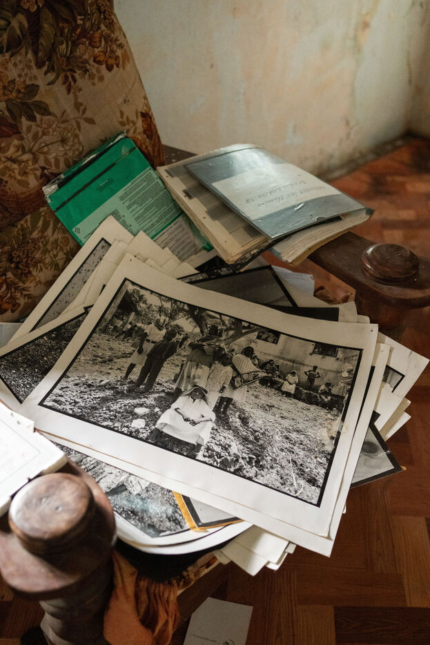 Elamine is a happy-go-lucky, lifelong photographer. He's rubbed shoulders with the greats and photographed with all kinds of cameras, from film to digital, all over the world, especially between France and the Comoros. I call him the Dali of the Comoros, and he tells a whole life story, moving from one story to another and crossing timeframes. He tells his stories as if you were there, without worrying whether you understand everything he says. I spend a short afternoon with him, and he invites us into his home to show us all his photos, telling us that the rest are in containers arriving from France. Elamine moves back to Moroni. Moroni, Union of the Comoros, May 2, 2025.