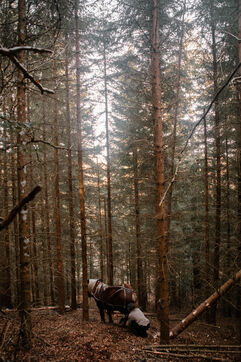 FRANCE - ENVIRONNEMENT - DÉBARDAGE À CHEVAL TRADITIONNNEL EN FORÊT