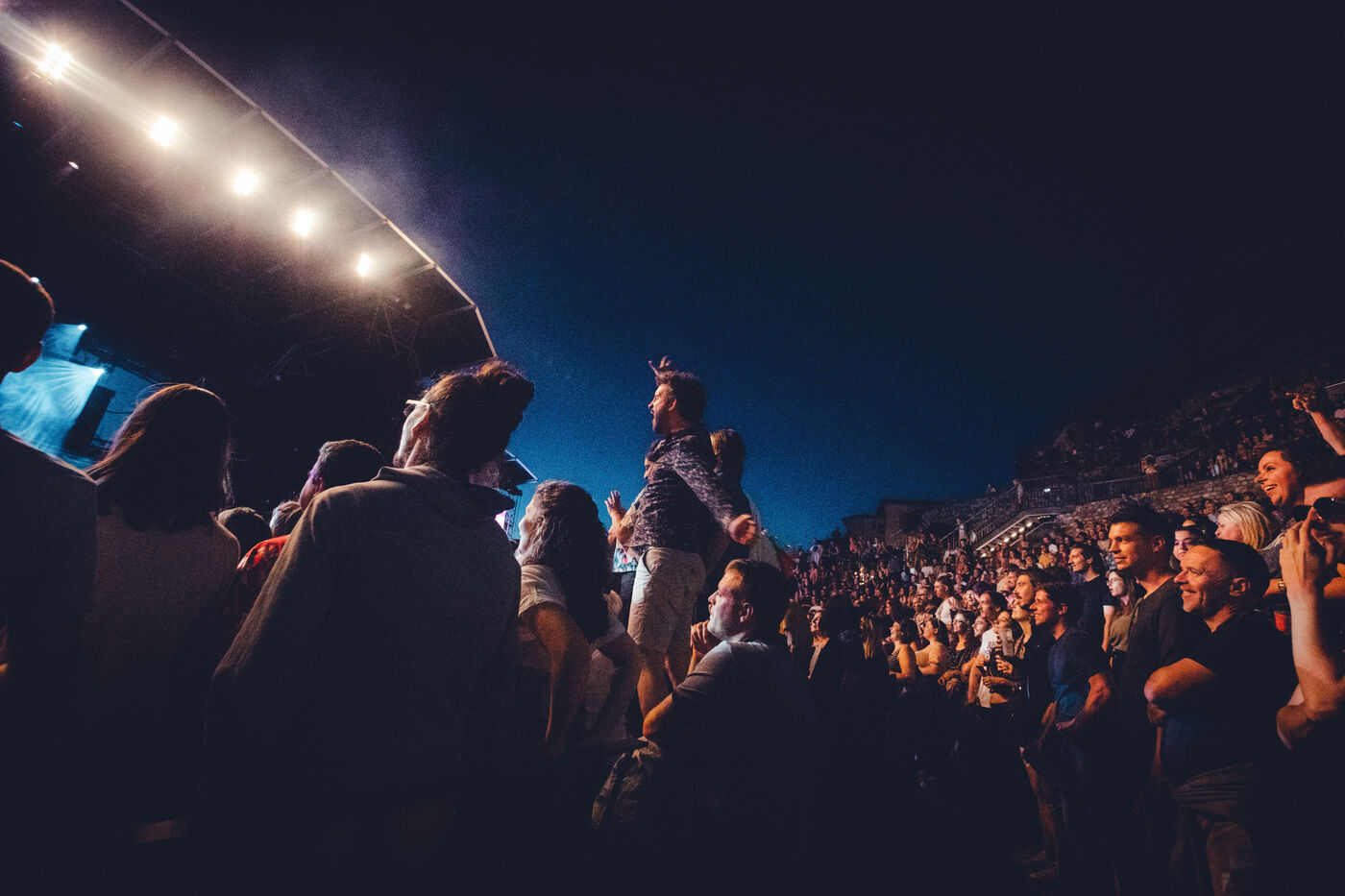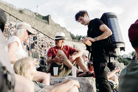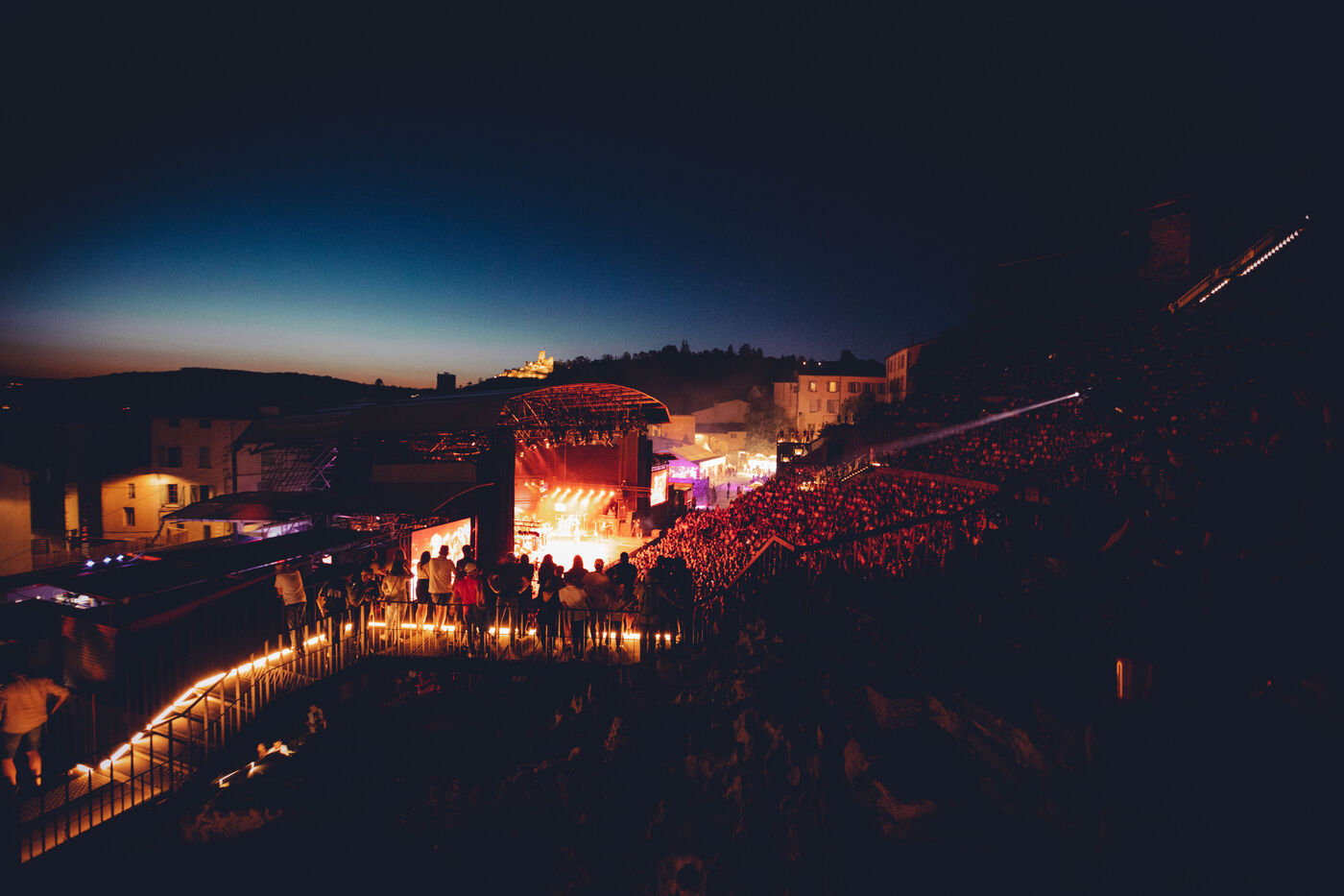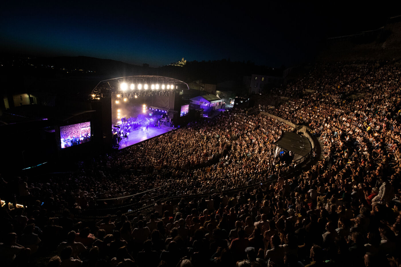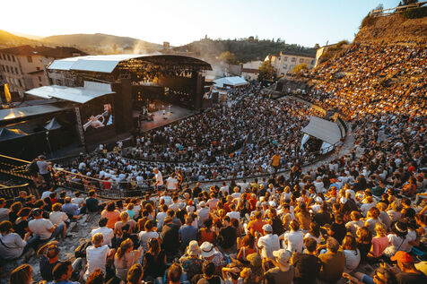FRANCE - Vienne, 2022 - 2023, photographies d'ambiance prises durant le festival Jazz à Vienne, à Vienne en Isère (38), en 2022 et 2023. Public, ambiance, théâtre, infrastructures... Photographie de Marie Julliard / Hans Lucas.