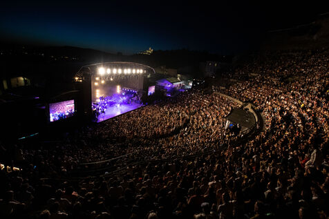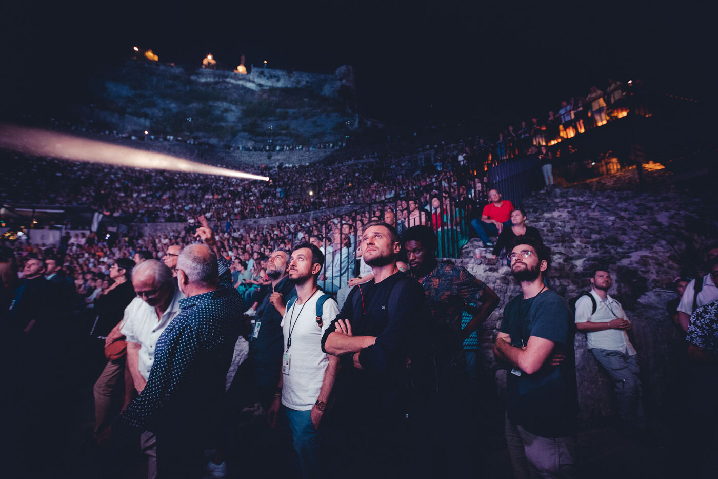 FRANCE - Vienne, 2022 - 2023, atmospheric photographs taken during the Jazz à Vienne festival, in Vienne, Isère (38), in 2022 and 2023. Public, atmosphere, theater, infrastructures... Photography by Marie Julliard / Hans Lucas.