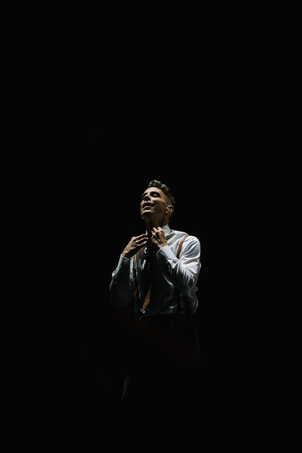 FRANCE - Vienne, lundi 08 juillet 2024, concert de Asaf Avidan au théâtre antique de Vienne en ouverture de la 43ème édition du festival de Jazz à Vienne. Auteur, compositeur et chanteur israélien connu pour ses mélodies pop-rock et son timbre de voix haut-perché et écorché. Photographie de Marie Julliard / Hans Lucas.