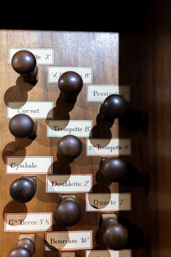 Anciens instruments de musique utilisés dans le répertoire de la musique baroque et Renaissance tels que le cornet à bouquet, le serpent, le cervelas, la viole de gambe, l'orgue et le théorbe (ou archiluth).