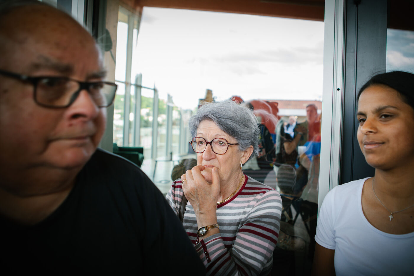 FRANCE - Le Puy-en-Velay, dimanche 18 mai 2025, résultat du vote pour la présidence des républicains LR entre Laurent Wauquiez, chef de file à l’assemblée et le ministre de l’Intérieur Bruno Retailleau dans les locaux de la Fédération Les Républicains au Puy-en-Velay. Il a été accueilli entre larmes et sourires par ses militants brandissant des drapeaux dans sa ville après sa défaite. Photographie de Marie Julliard / Hans Lucas.
