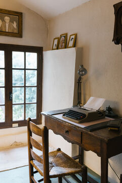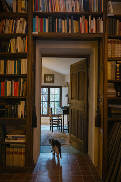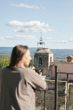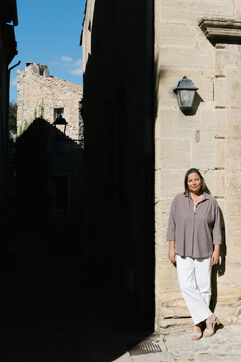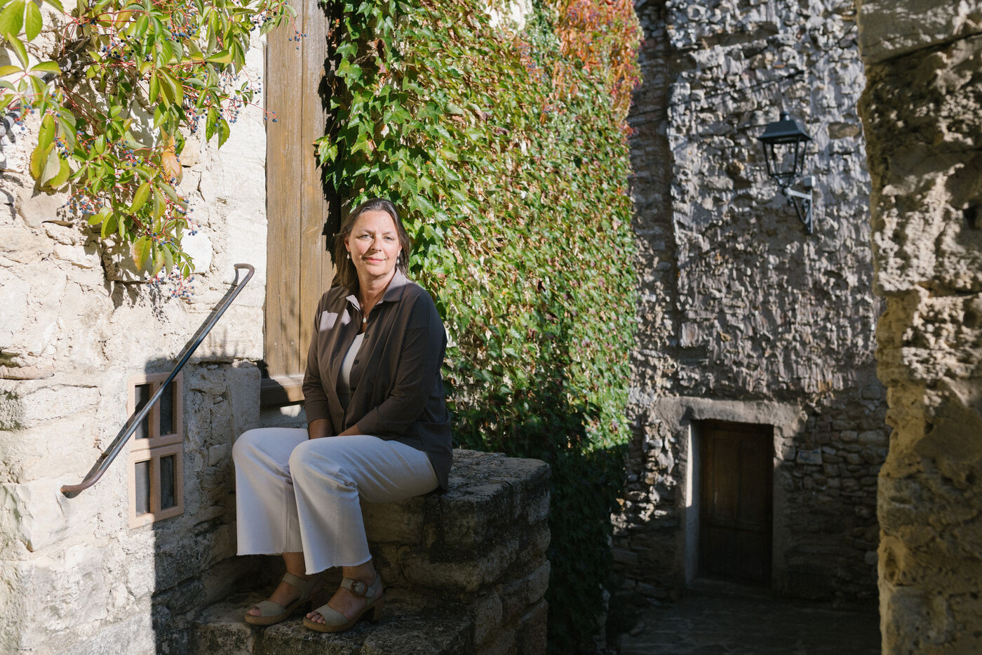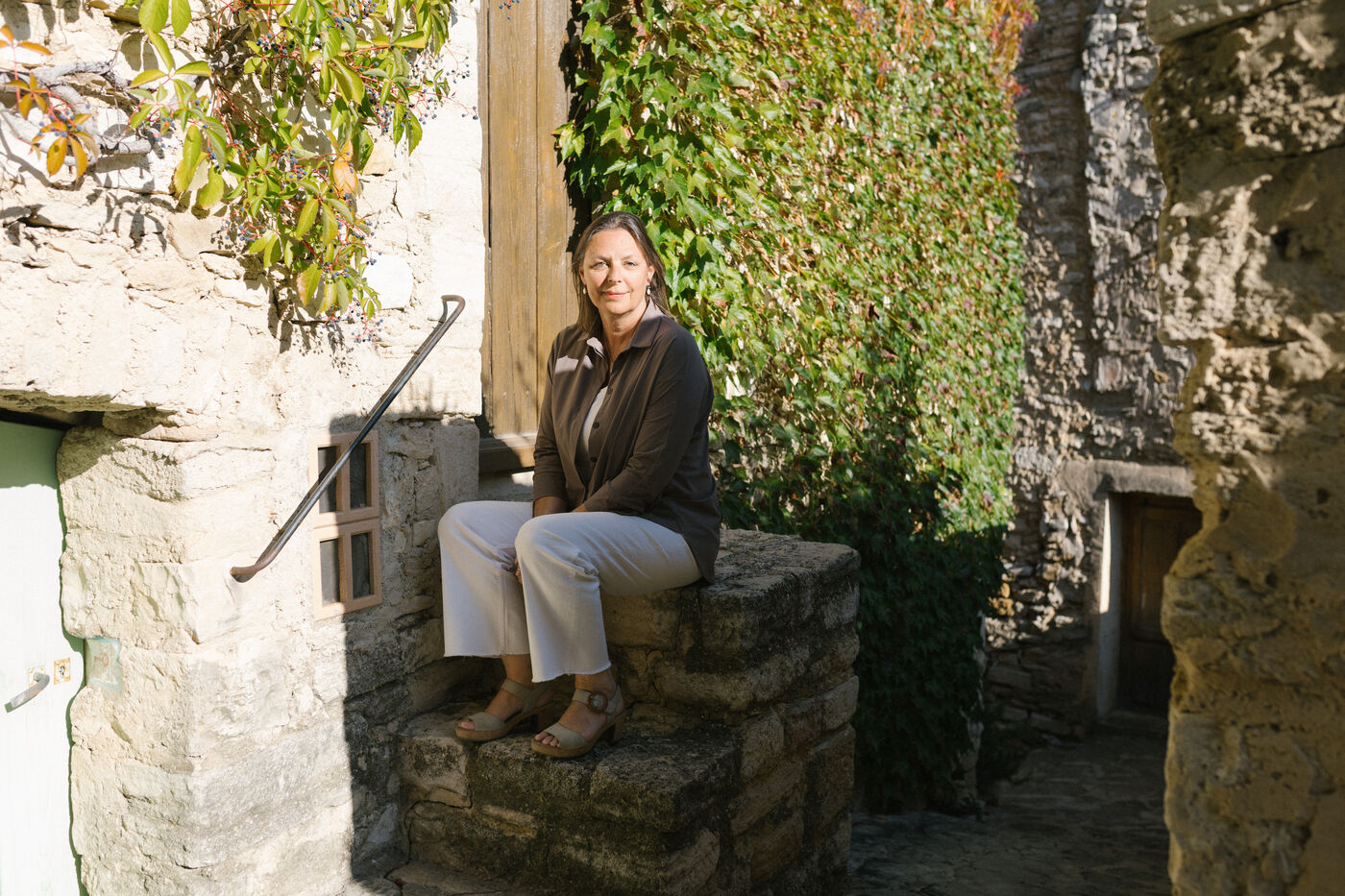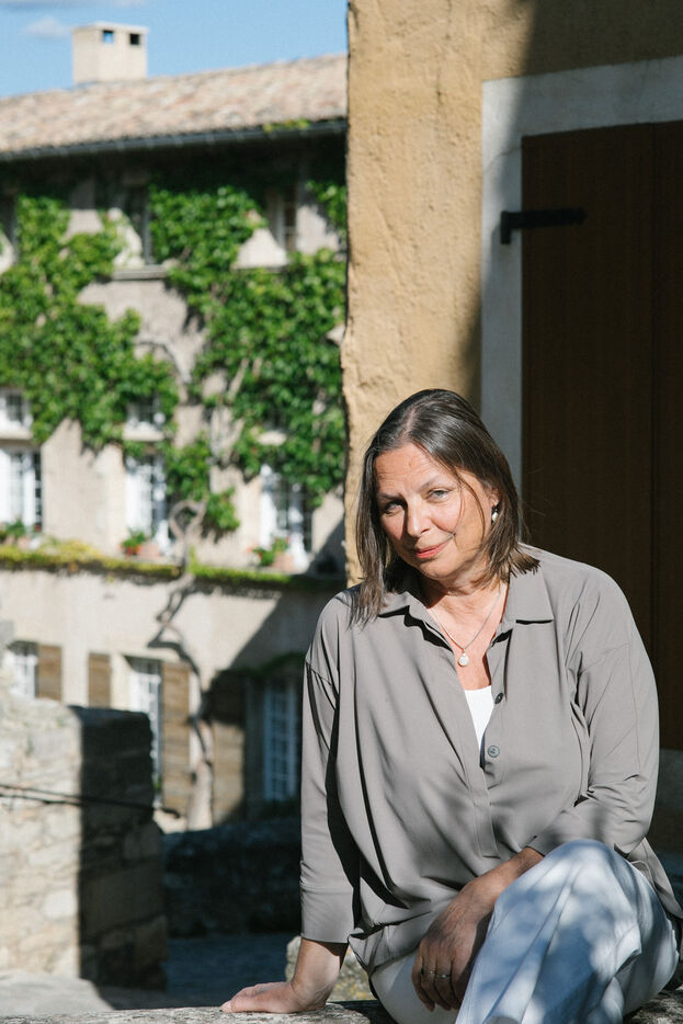 FRANCE - Le Barroux, Thursday, September 11, 2025, meeting with Dutch-speaking Belgian writer Sigrid Bousset in the Provençal village of Le Barroux in Vaucluse to promote her biographical book about the writer Ivo Michiels, who lived in this village for forty years. Born in 1969, Sigrid Bousset is a Belgian writer, playwright, and literary curator. She co-founded and directed Passa Porta, the international house of literature in Brussels, until 2014. Photograph by Marie Julliard / Hans Lucas.