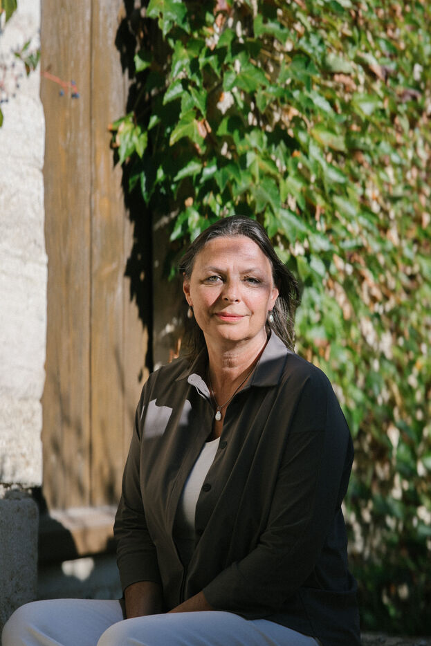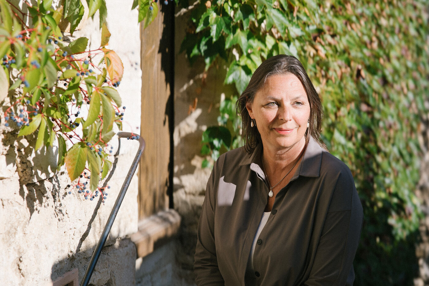 FRANCE - Le Barroux, jeudi 11 septembre 2025, rencontre avec l’écrivaine belge néerlandophone Sigrid Bousset dans le village provençal du Vaucluse Le Barroux pour la promotion de son livre biographique consacré à l’écrivain Ivo Michiels, qui a vécu quarante ans dans ce village. Née en 1969, Sigrid Bousset est une écrivaine, dramaturge et commissaire littéraire belge. Elle a cofondé puis dirigé Passa Porta, la maison internationale des littératures à Bruxelles jusqu'en 2014. Photographie de Marie Julliard / Hans Lucas.