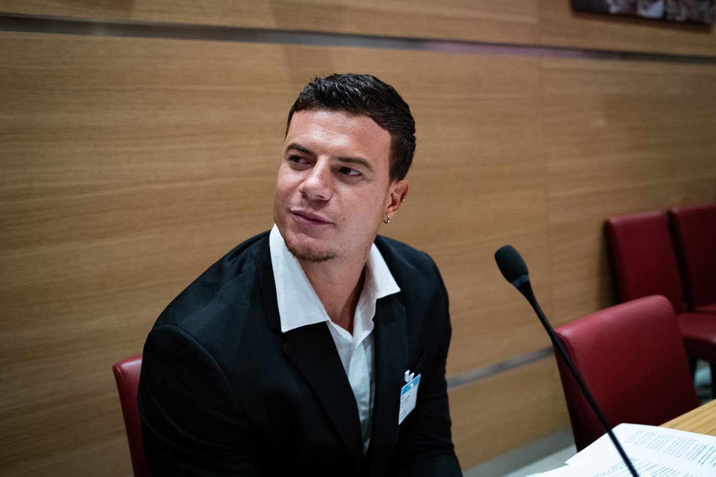 L'influenceur Adrien Laurent, plus connu sous le nom d'AD Laurent, a été auditionné par la commission parlementaire sur les effets psychologiques de TikTok à l'Assemblée nationale à Paris, France le 10 juin 2025.