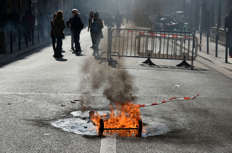 traditional May Day labour union march in Paris. Demonstration was disrupted by the violence between protesters and police.