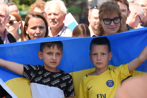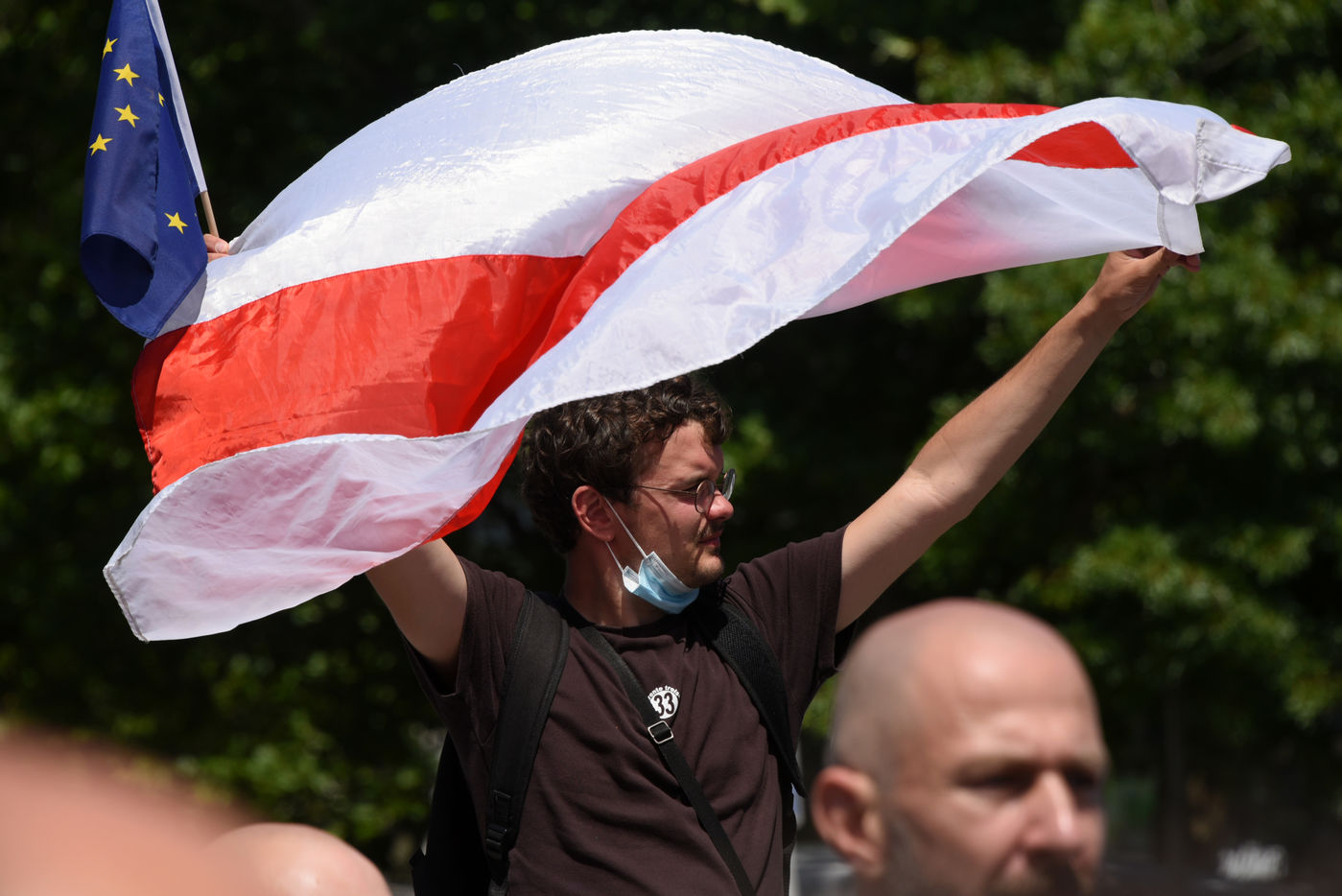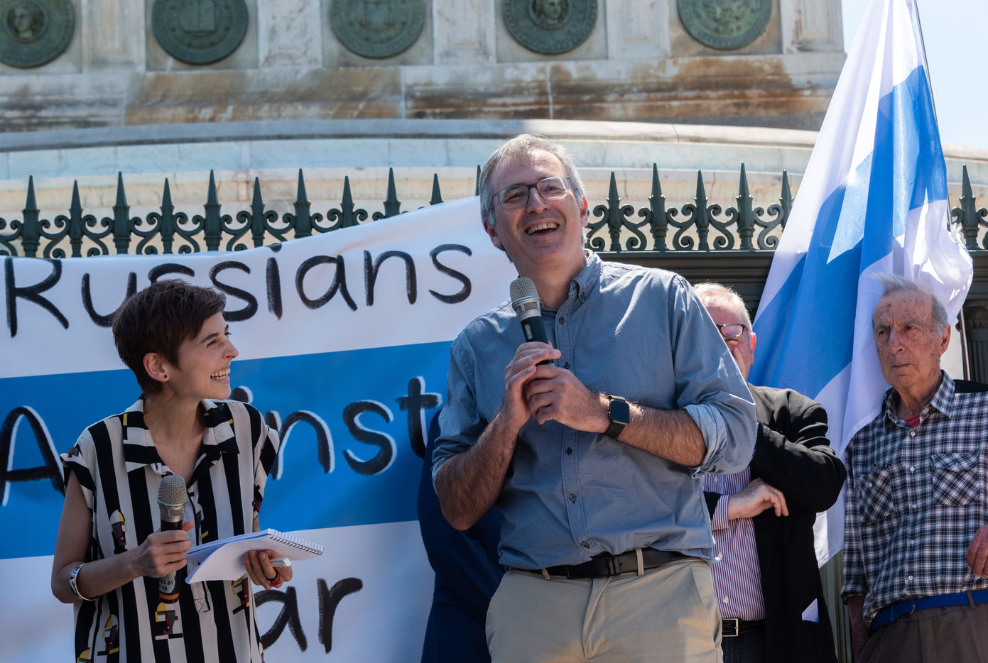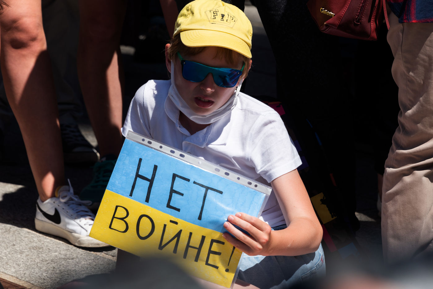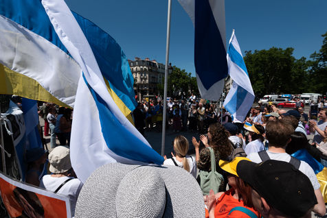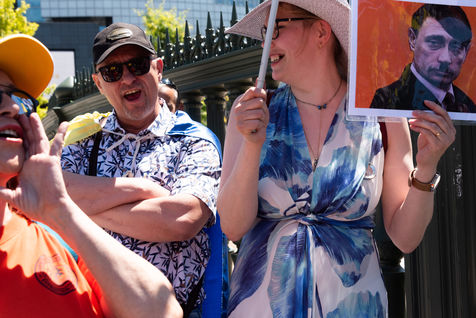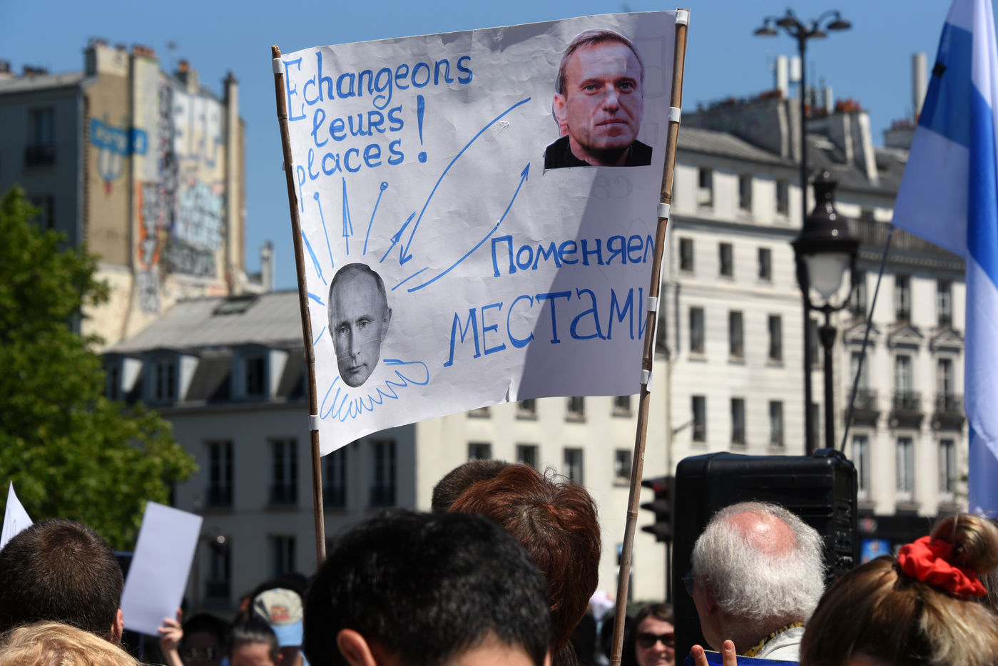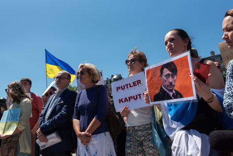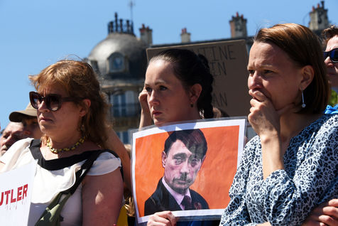 People protesting against the war with Ukraine during Russia day. Hundreds of people gathered for the protest action «Russians against the war», which took place on Place de la Bastille in Paris.