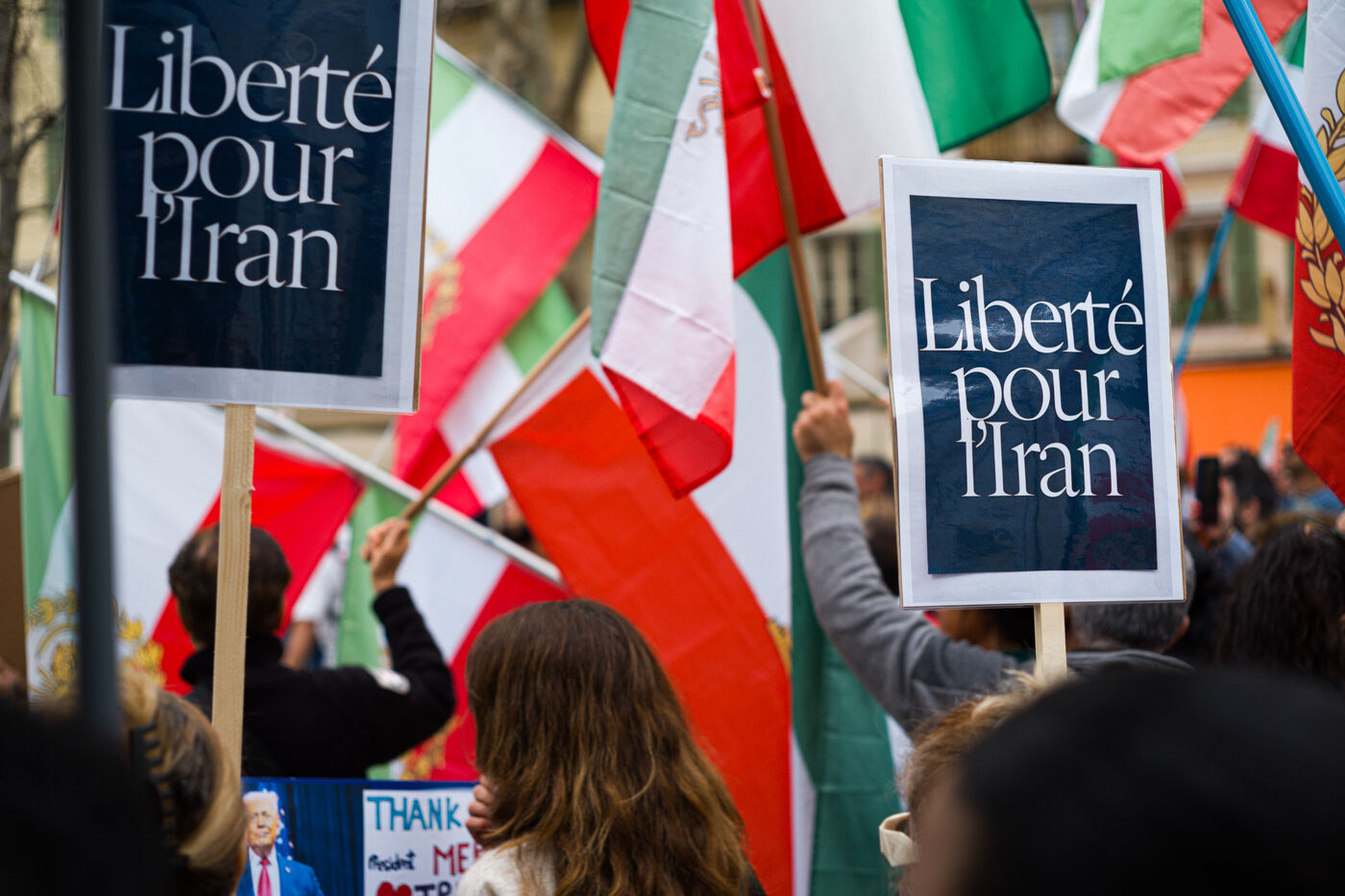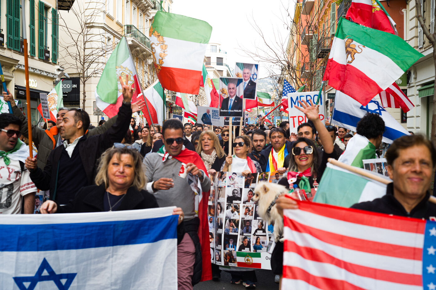A large celebration bringing together several hundred people took place in Nice on Sunday, 1 March 2026, after the announcement of the death of Ayatollah Ali Khamenei, who was killed by the American-Israeli coalition. Several people waving American flags thanked the American power and its president Donald Trump for their military intervention.