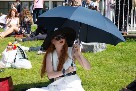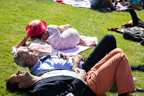 Elegant outfits and spectacular hats are on display on the lawns and in the stands.