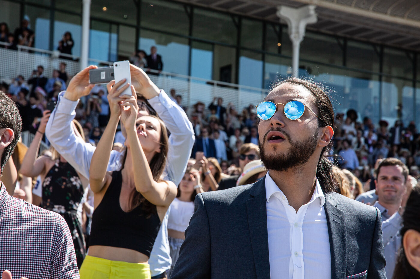 The report focuses on the energy and sophisticated attire of the crowd and spectators amidst the suspense, eyes fixed on the track and moments of conviviality, showcasing an event where equestrian sport becomes a true social spectacle where elegance reigns supreme