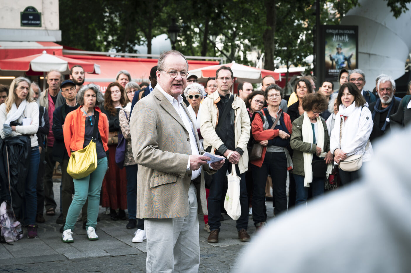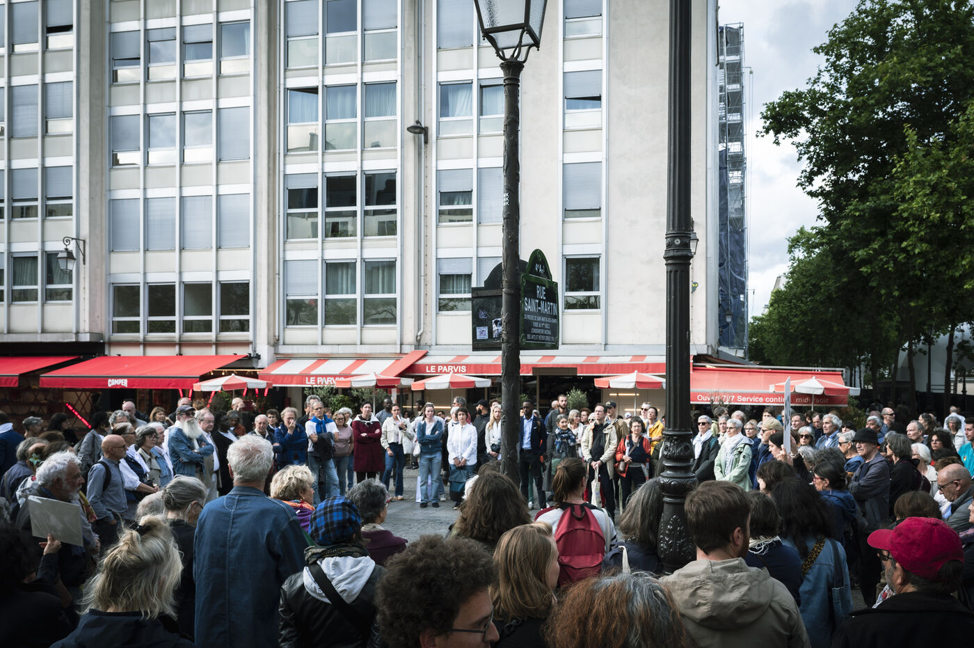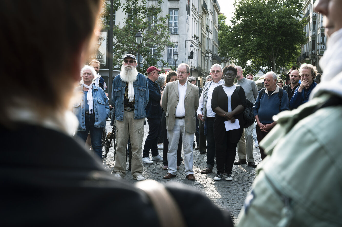 Our silence is a cry" rally in Paris at Place Beaubourg in support of Gaza. Participants remained silent for 30 minutes in protest. A manifesto was signed by a number of public figures, including Claire Nouvian, Yann Arthus-Bertrand, Hervé Kemph and Lilian Thuram.