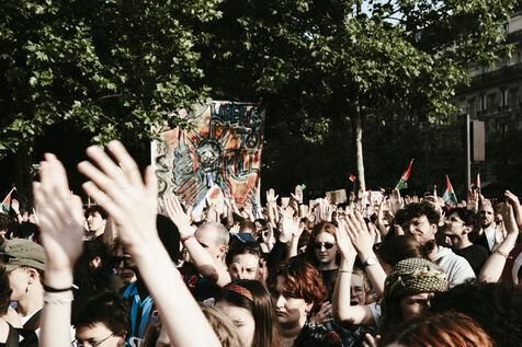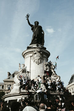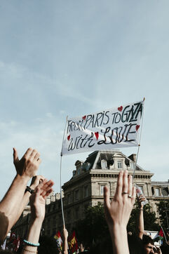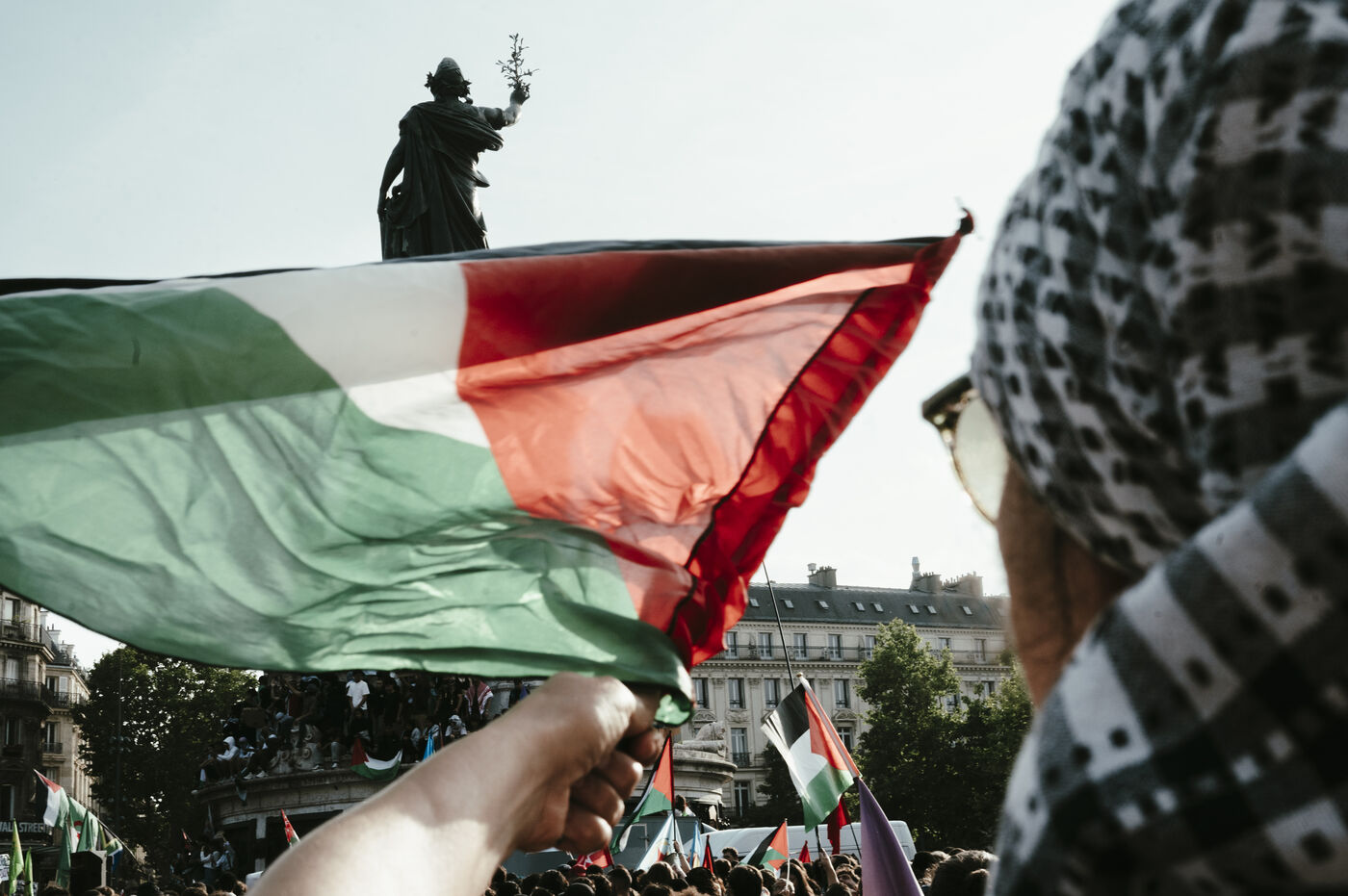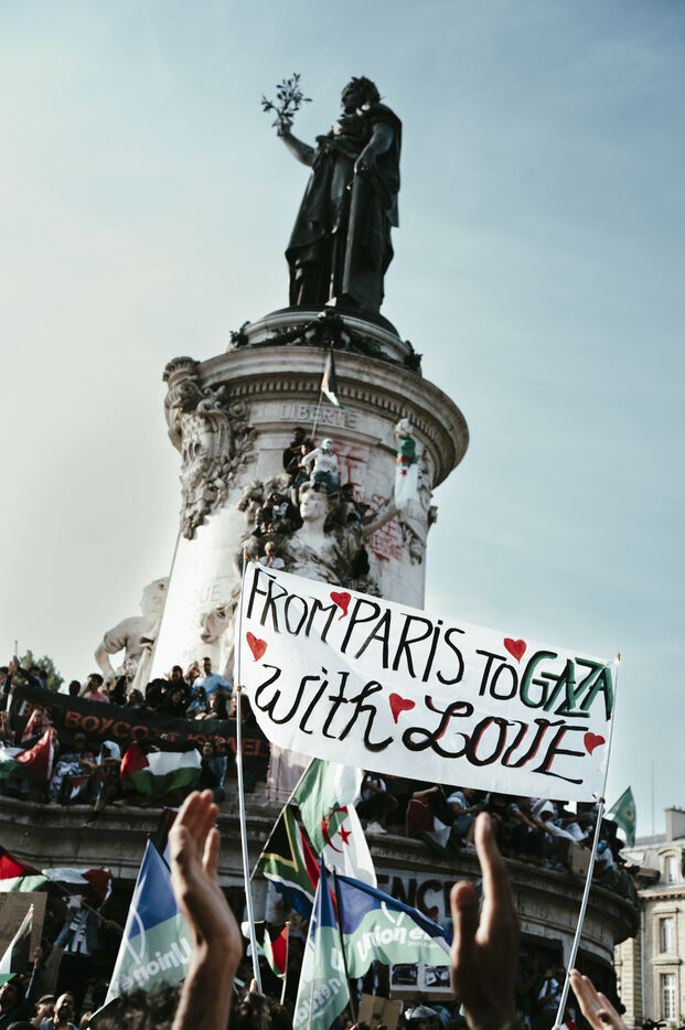 Rassemblement suite à l'arrestation des militants et journalistes et de arraisonnement de la flottille de la liberté Madleen, et en soutien au peuple de Gaza, contre le genocide en cours et pour une cessez le feu immédiat, place de la République.