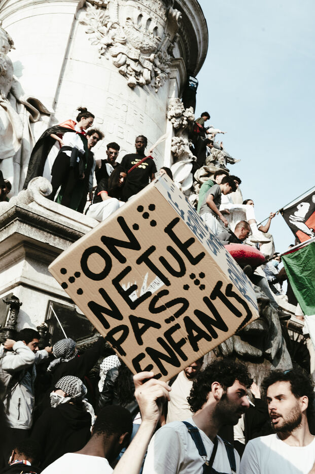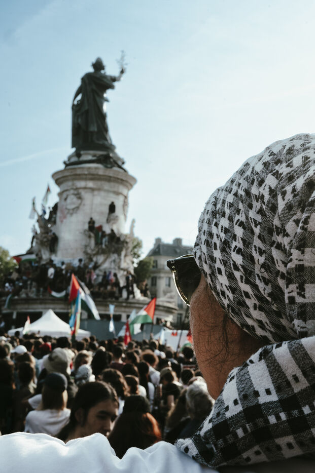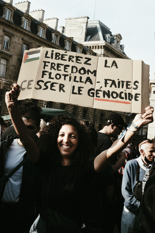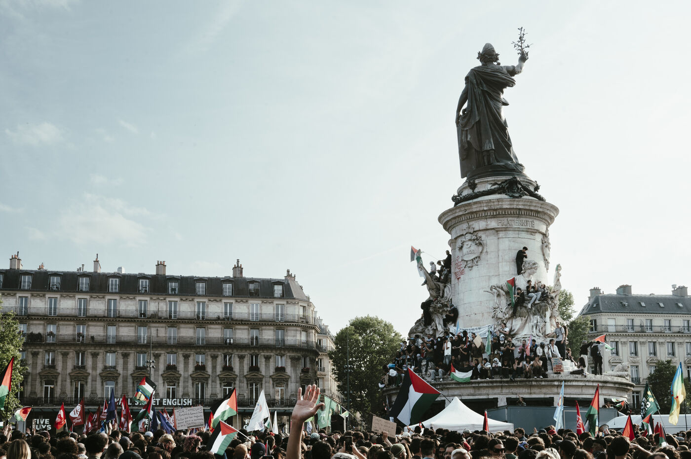Rally following the arrest of activists and journalists and the boarding of the Freedom Flotilla Madleen, and in support of the people of Gaza, against the ongoing genocide and for an immediate ceasefire, Place de la République.
