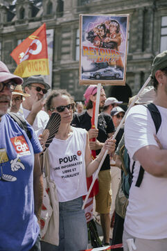 Demonstration against the holding company for public broadcasting set up by Culture Minister Rachida Dati. The demonstration followed several days of strike action at Radio France, France Télévisions and the INA.