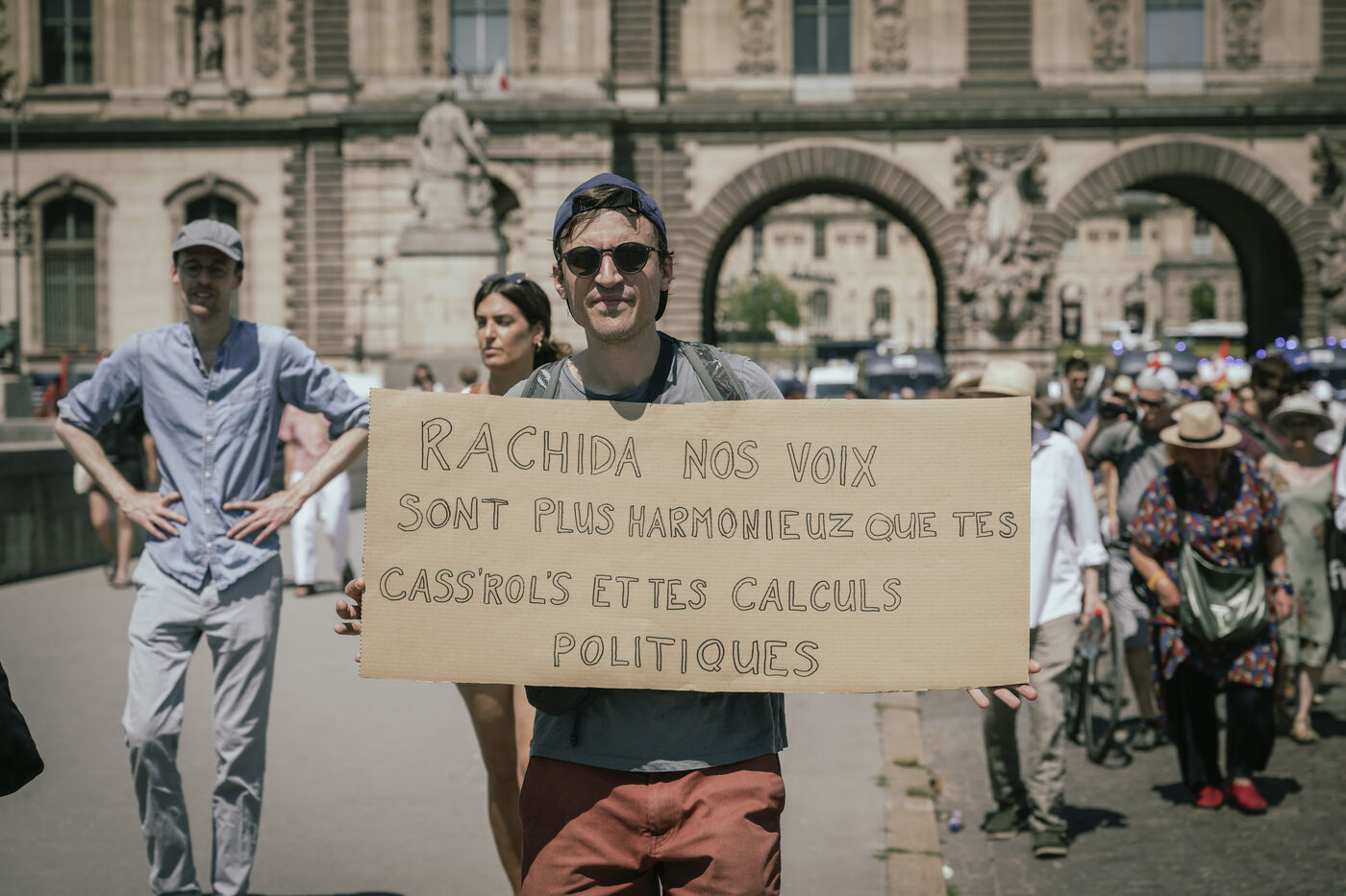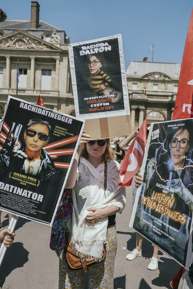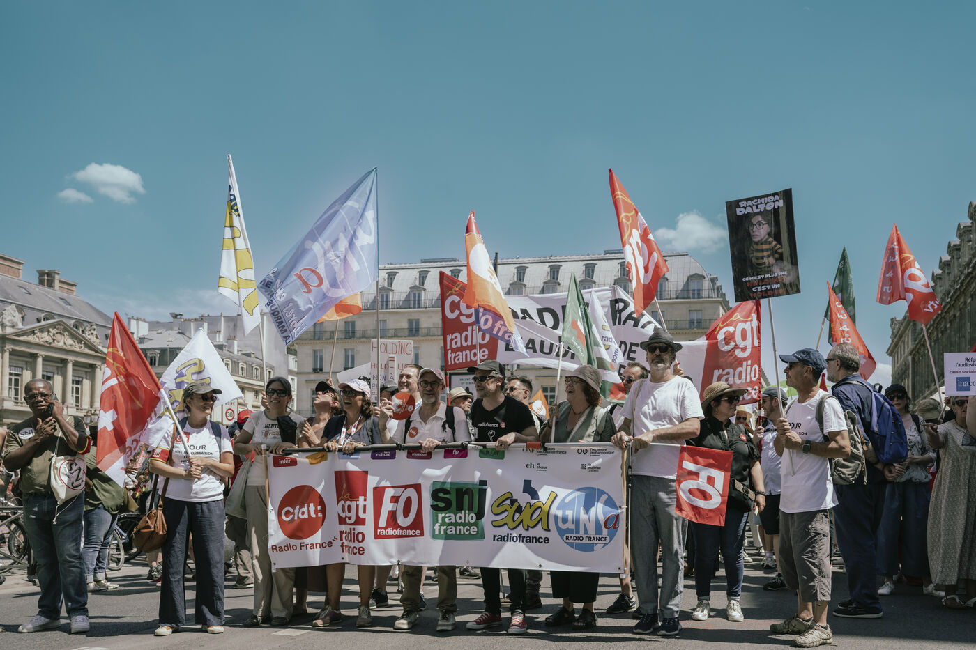 Manifestation contre la holding de l’audiovisuel public porté par la ministre de la Culture Rachida Dati. Une mobilisation qui fait suite à plusieurs jours de grève au sein de Radio France, de France Télévisions et de l’INA.