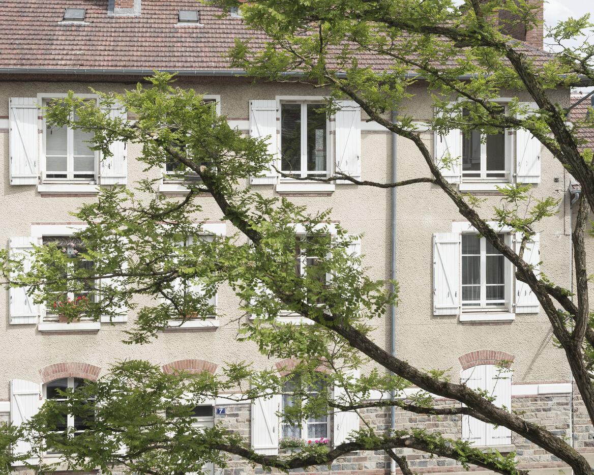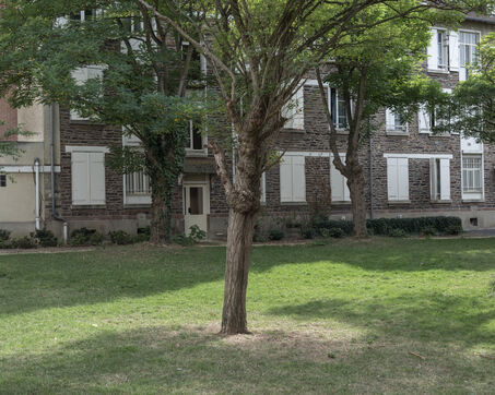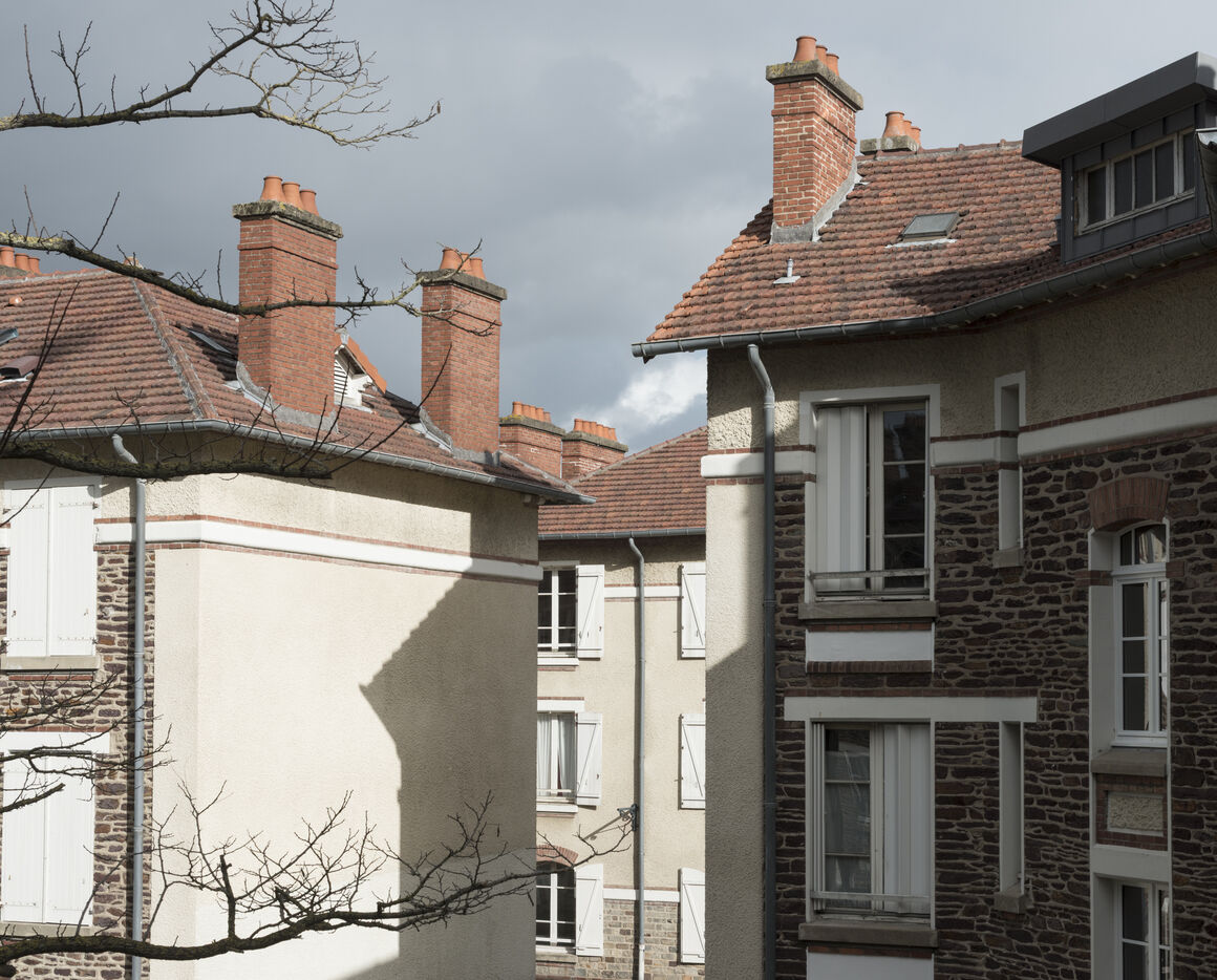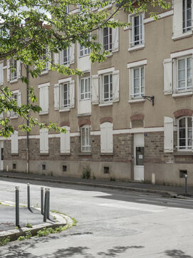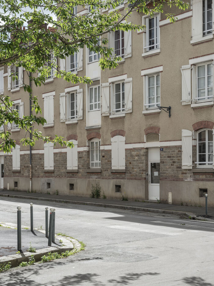 Built between 1928 and 1933, the Foyer rennais, a complex of 155 homes on rue de Nantes in Rennes, was the very first social housing development in Rennes. Initially sketched out by Hyacinthe Perrin, the project for this workers' housing estate was eventually entrusted to the architect Emmanuel Le Ray. Simple and affordable, the Foyer rennais flats were designed for the families of workers at the arsenal and railway station. With their red-tiled roofs, concrete on a shale base and red brick friezes, the flats were inspired by the English and German garden city models. The architecture of the Foyer rennais is a unique example in Rennes. Photographic work following the refurbishment of all the flats.
