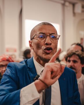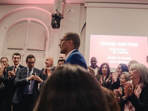 Le maire sortant (PS) de Saint-Ouen (Seine-Saint-Denis), Karim Bouamrane, et sa liste "Saint-Ouen je t'aime" organisaient un meeting de fin de campagne des élections municipales dans la salle Barbara le 12 mars 2026, quelques jours avant le premier tour des élections.