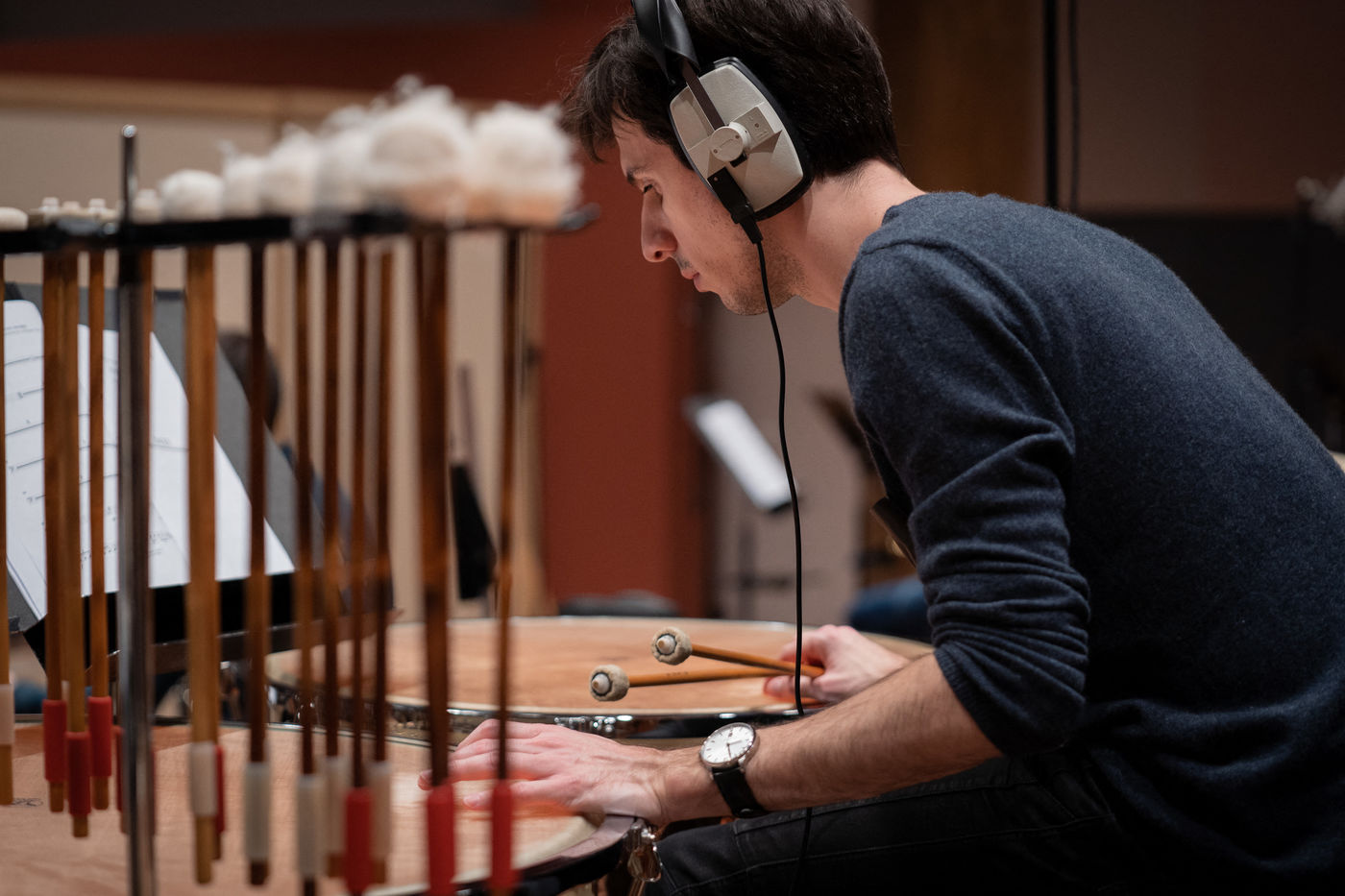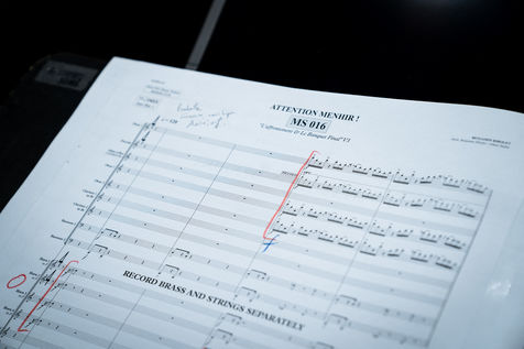 For 3 days, the Orchestre National d' Ile de France (ONDIF) under the direction of Benjamin Ribolet (music composer), records in their new recording studio, the Charles Aznavour studio, the music of the future attraction of the Asterix Park.