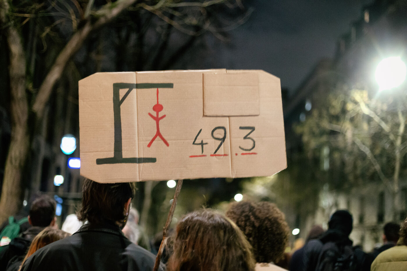 Demonstration from Place d'Italie against the use of 49.3 and the pension reform
