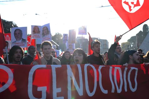 The protesters are calling for the resignation of the Meloni government and the breaking of all diplomatic and economic relations with Israel.