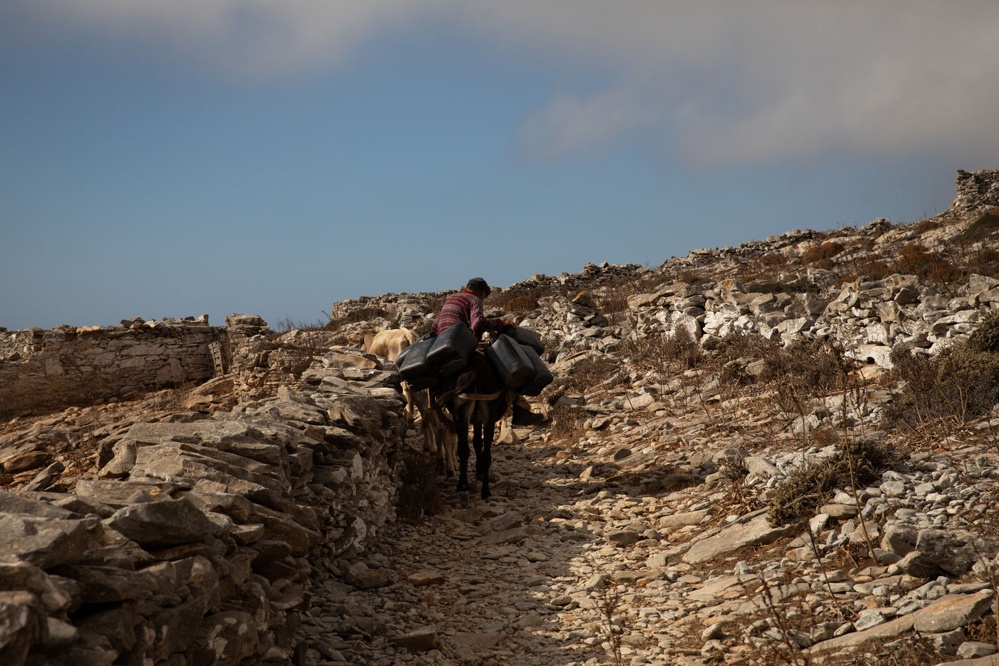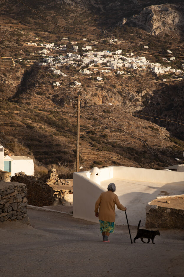 En pleine mer Égée, dans les Cyclades, l’île d’Amorgos se distingue par son isolement et son rythme lent. Cette série photographique explore l’île par la marche. Les paysages de pierre, de mer et de vent dialoguent avec des présences humaines discrètes. Plus isolée, plus pauvre, Amorgos exerce pourtant une attraction profonde, loin des images idéalisées des Cyclades.