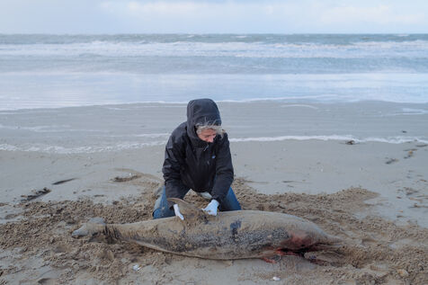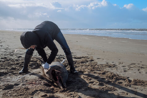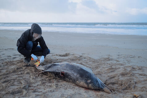 Partout sur les côtes françaises, les correspondants du Réseau National des Echouages, coordonné par l'observatoire et institut de recherche Pelagis, se rendent sur les lieux des échouages signalés par des promeneurs. Ils identifient l'espèce de l'animal échoué, prennent ses mesures et des photographies pour documenter d'éventuelles traces externes de capture (perforations, amputations...), et prélèvent parfois ses organes pour les envoyer à Pelagis pour analyse, ce qui permettra de mieux cerner la cause de sa mort et suivre l'état de santé des populations.