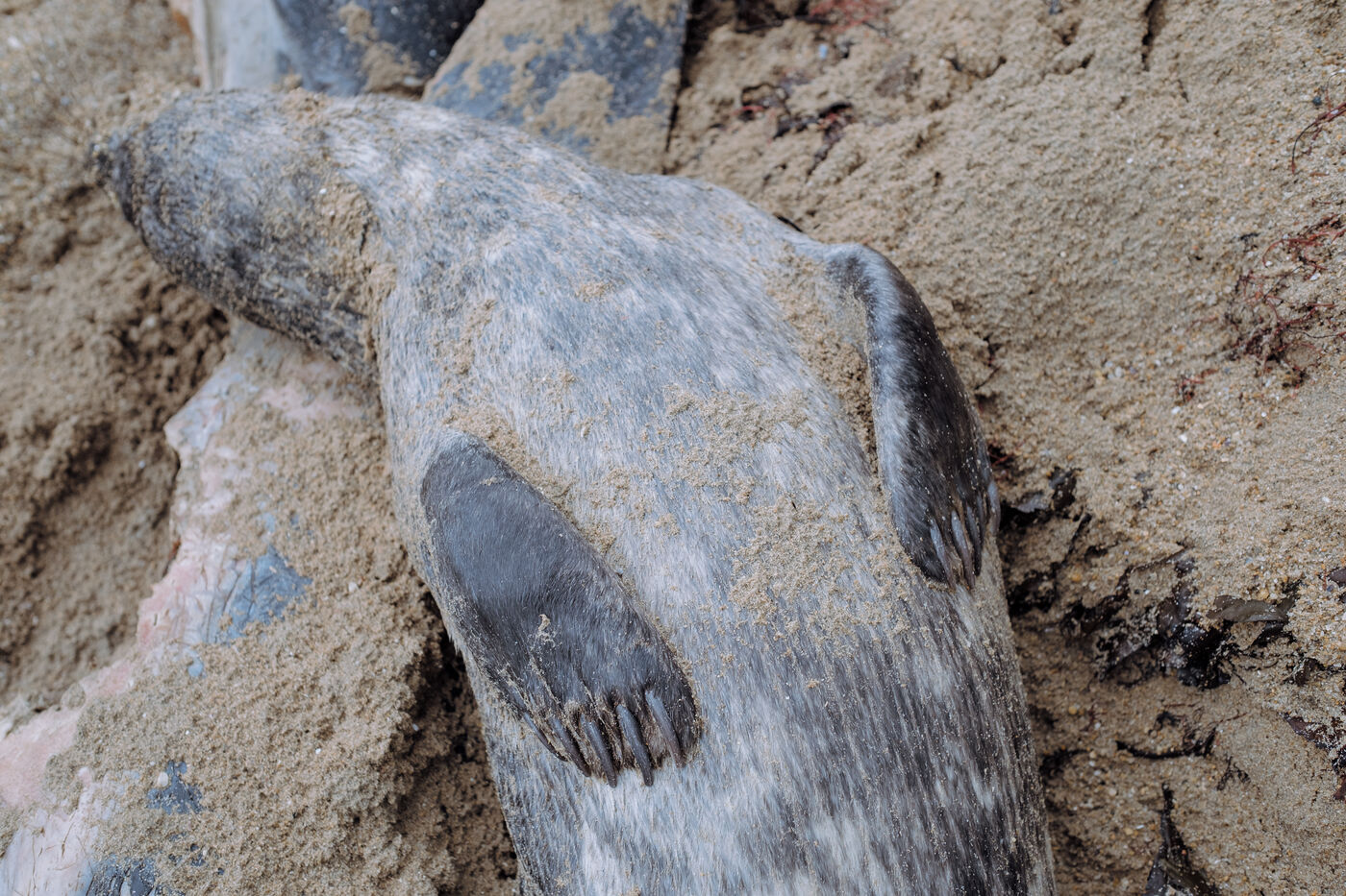 En janvier 2023, j'ai suivi sur des échouages Perrine Dulac, bénévole dans le nord de la Vendée, et des membres de l'association Hirondelle dans le Pays de Retz, tous formés par Pelagis pour intervenir sur des échouages et faire des prélèvement d'organes quand c'est nécessaire.