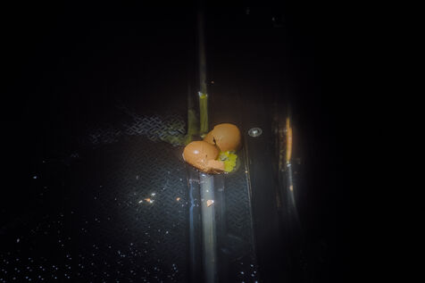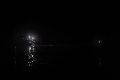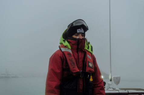 Les chalutiers repérés sur le radar, Clémentine s'approche et navigue à proximité pendant toute la durée du chalutage, jusqu'à 5h du matin. Chacun.e s'installe comme iel peut pour se reposer dans le froid pendant ces longues heures d'attente, en guettant la remontée du chalut.