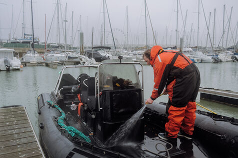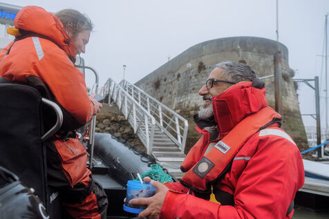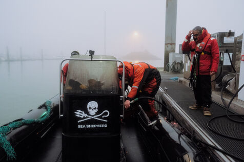 At daybreak, in the Gironde estuary, the Sea Shepherd team refuels and alerts the police about the incident that took place during the night. Three police officers came to investigate before the team cleaned the boat, regained some strength with vegan food (mandatory on Sea Shepherd's missions)in thermoses and then headed back to their home port.