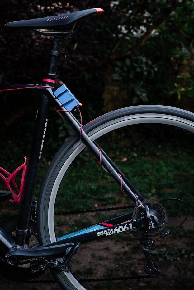 Portrait dans son jardin de Déodat Guerton, 16 ans, vainqueur du concours mensuel Innovez de Science & Vie Junior avec son Autofos, lumière automatique de vélo s'allumant uniquement quand ses capteurs détectent le mouvement de la roue et une faible luminosité ambiante.