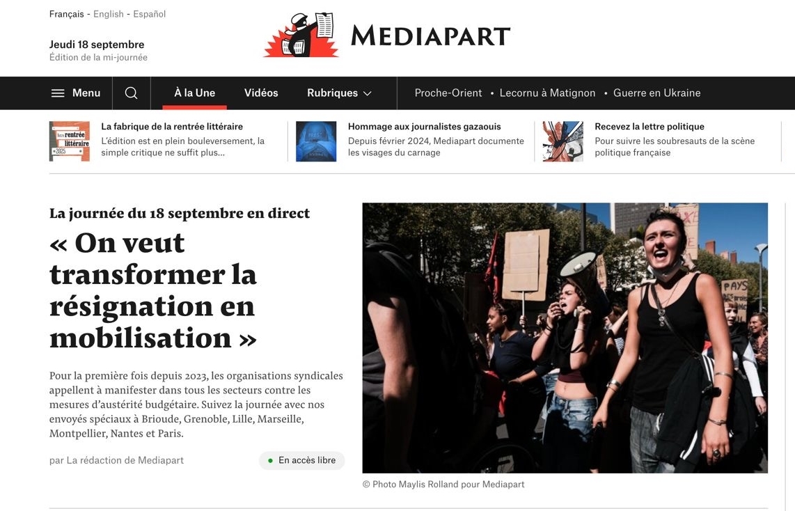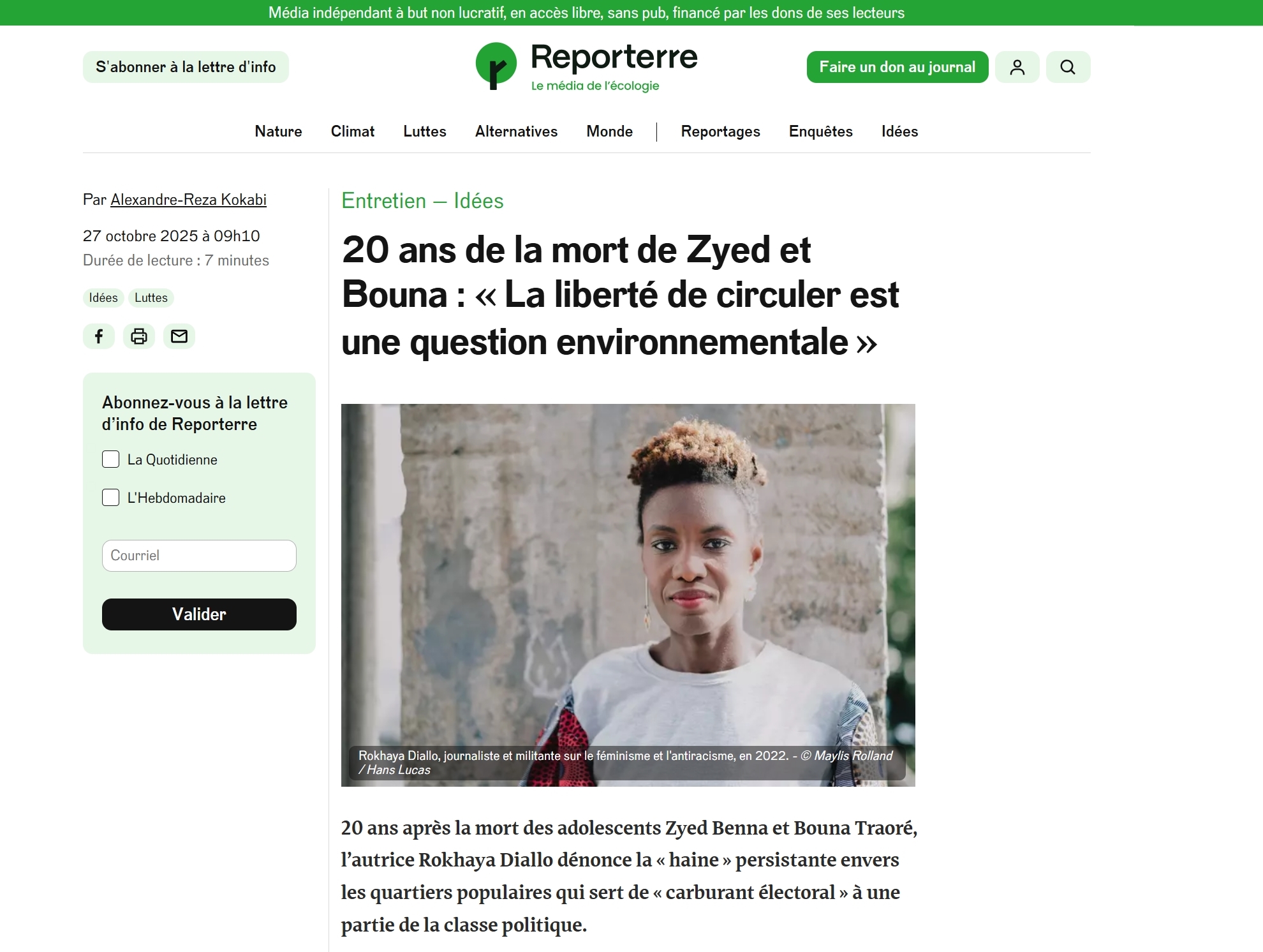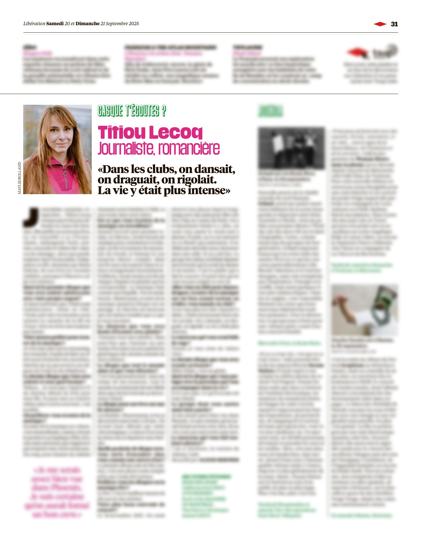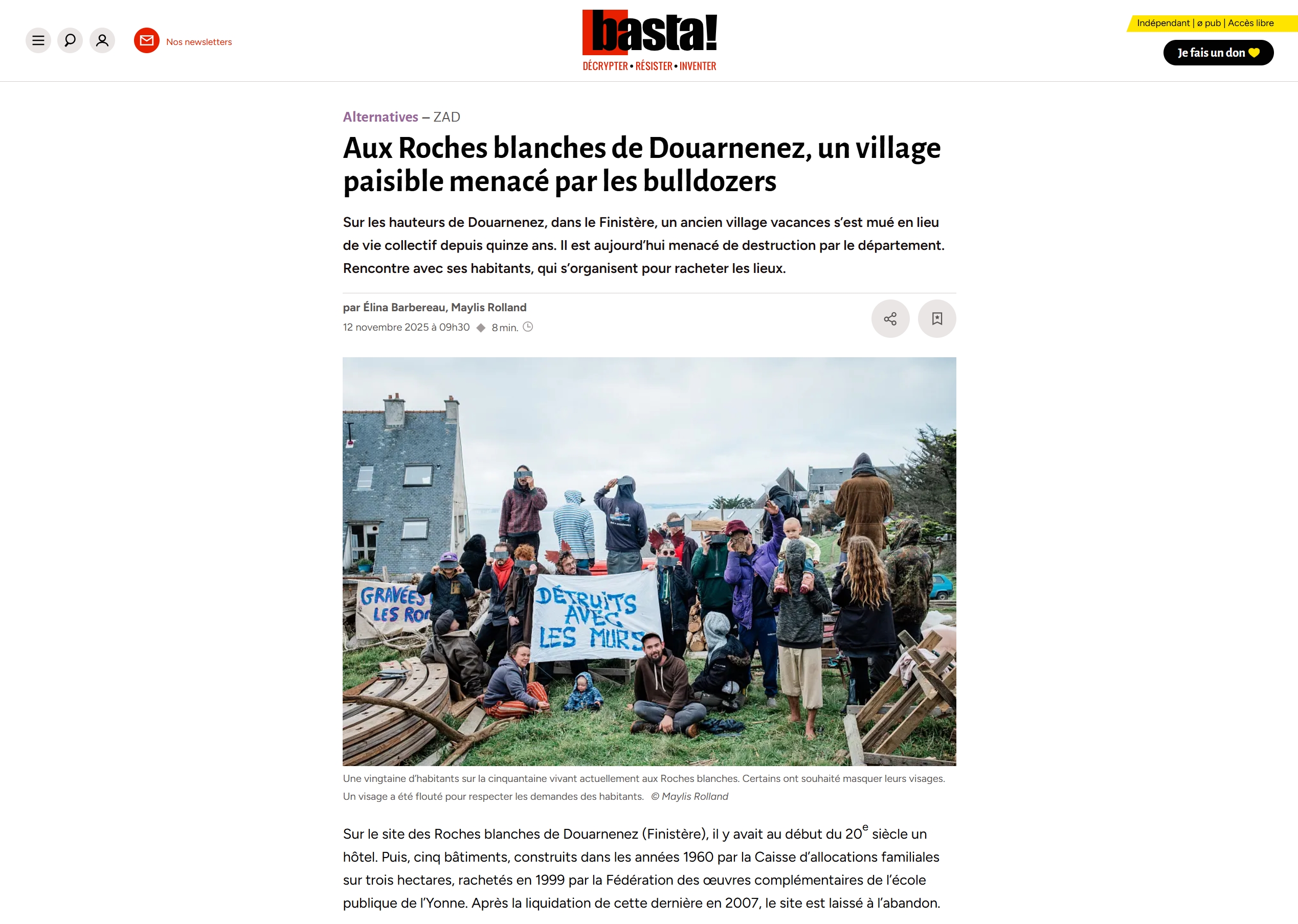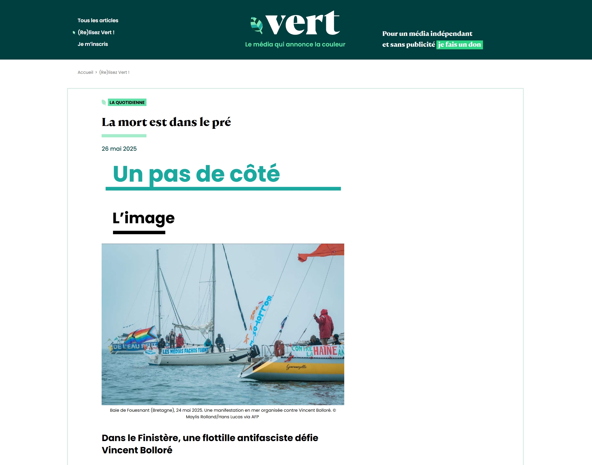 Maylis Rolland Publications Séries / Archive Culture — Environnement — Grand Ouest — Politique — Société — Sport Sélection de séries Basta - Une et portfolio - 12 novembre 2025 Reporterre - 27 octobre 2025 Le Figaro - der - 9 octobre 2025 L'Humanité - 3-5 octobre 2025 Libération - 26 septembre 2025 Sciences humaines - Octobre 2025 Libération - 20-21 septembre 2025 Mediapart - live - 18 septembre 2025 L'Humanité - 10 septembre 2025 Science & Vie Junior - Septembre 2025 L'Humanité - 5 août 2025 Libération - 28 juillet 2025 Politis - 17 juillet 2025 Elle - 10 juillet 2025 L'Humanité - der - 30 juin 2025 L'Humanité - der - 11 juin 2025 Télérama - 4 juin 2025 La Déferlante - 6 pages - Mai 2025 Vert - 26 mai 2025 L'Humanité - der - 14 mai 2025