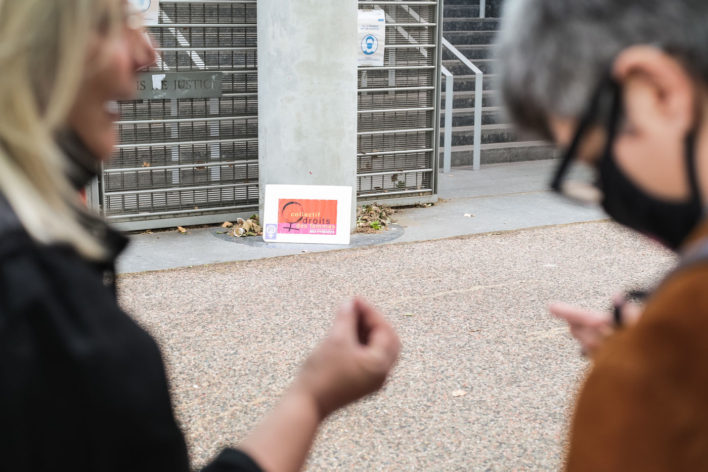 The Midi-Pyrenees Collective for Women's Rights are demonstrating in front of the courthouse in Toulouse. These women are angry at the increasing number of feminicides, that the existing laws are poorly applied and that the perpetrators of domestic violence are very rarely convicted with derisory sentences. Toulouse, 2 June 2021.