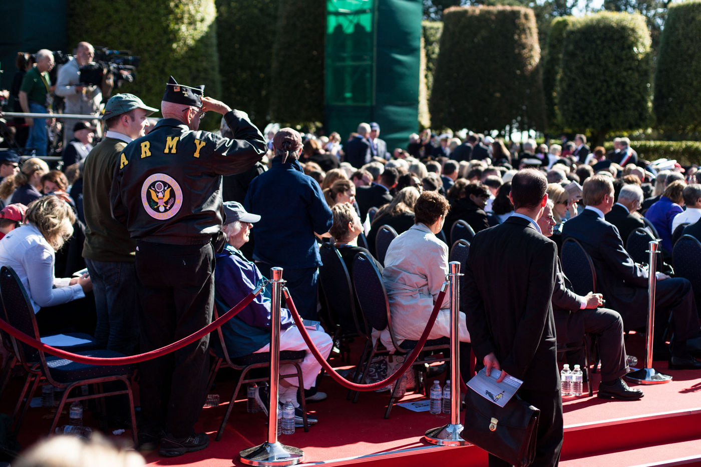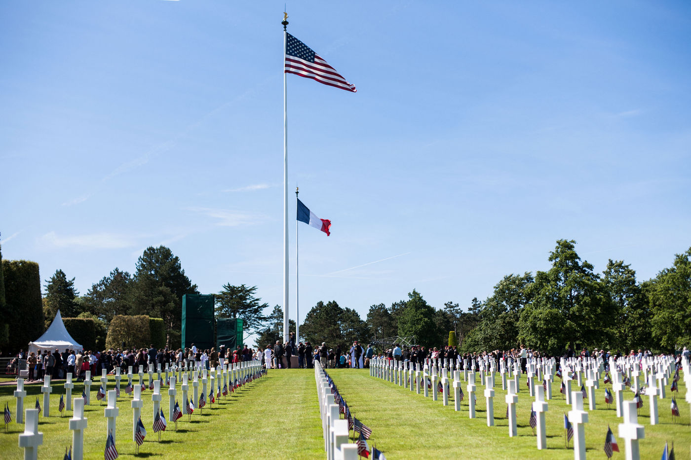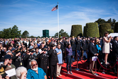 Colleville sur Mer, France le 6 juin 2014. Commemoration du 70eme anniversaire du debarquement des forces allies en Normandie lors de la seconde guerre mondiale. Ceremonie bi nationale France - Etats Unis au cimetiere americain.