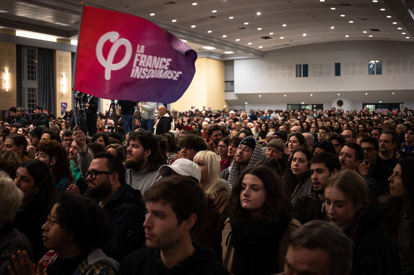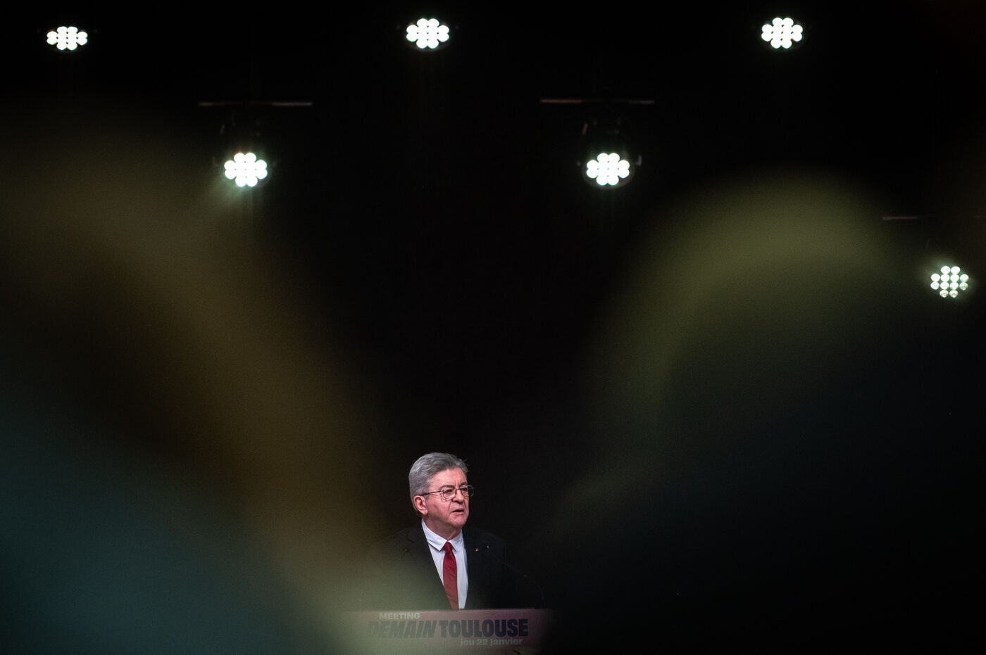 Le leader de la France Insoumise (LFI) Jean Luc Melenchon participe a un meeting de soutien au candidat local LFI Francois Piquemal, a Toulouse le 22 janvier 2026.