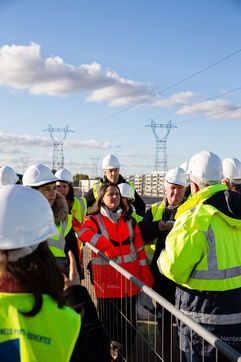 Visite du chantier du Marché d'intérêt national (MIN) de Nantes, le deuxième marché de gros de France après Rungis, avec Johanna Rolland, maire de Nantes et présidente de Nantes métropole, des élus locaux et la presse. Le bâtiment principal sera plus long que la Tour Eiffel. Et dès 2019, une centaine de grossistes et de producteurs locaux sont attendus. Rezé, le 13 novembre 2017.