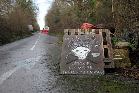 La route départementale 281, appelée aussi la route des chicanes ou encore la route des Ardillières, traverse la ZAD et la zone du projet d'aéroport de Notre Dame des Landes. Elle est devenue un symbole de la résistance des anti-aéroport. Notre-Dame-des-Landes, le 6 Jan. 2018.