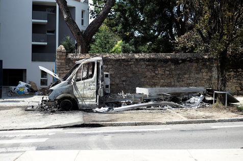 Buildings and cars set on fire, the day after urban violence in Nantes after the death of a young man shot by a police officer during a checkpoint in the Breil district.