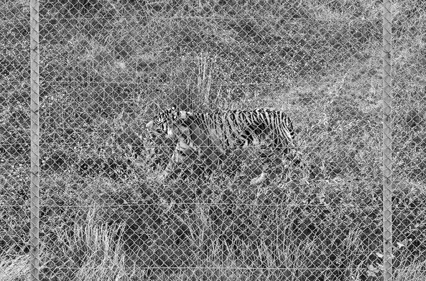 Cette série en noir et blanc saisit ces instants de réciprocité fragile, où le regard devient un pont… ou un mur. Les frontières matérielles et symboliques – grillages, reflets, panneaux – s’imposent comme des personnages à part entière, révélant l’artificialité de cette rencontre.