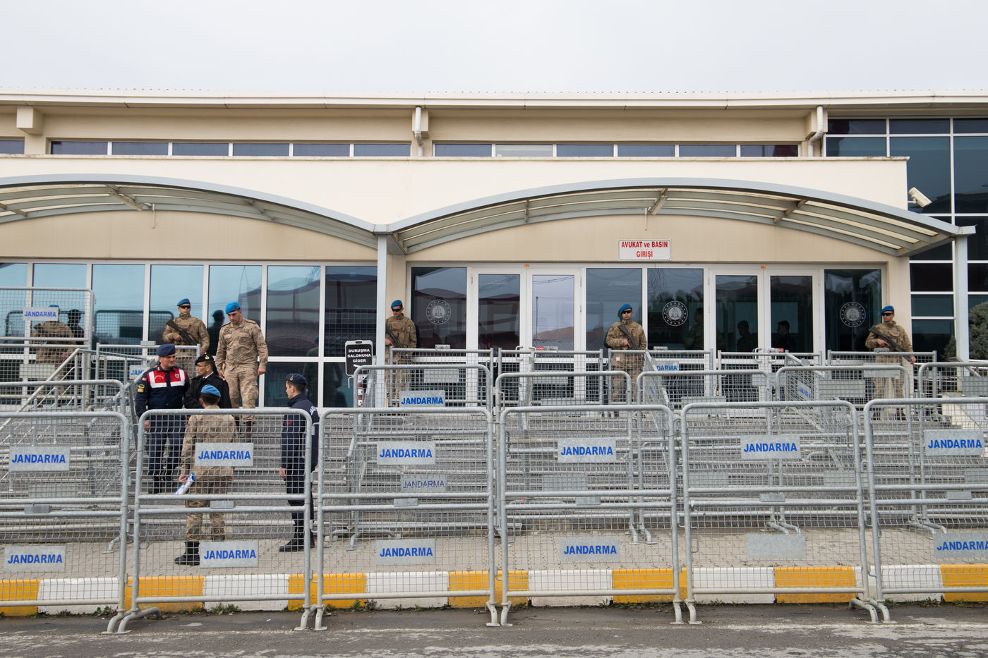During the fifth hearing of Gezi trial on January 28, 2019 in Istanbul, lawyers take a break outside the Silivri courthouse. Sixteen leading Turkish civil society leaders are accused of seeking to overthrow the government during the "Gezi Park" protests of 2013.
