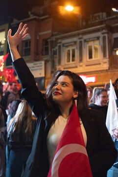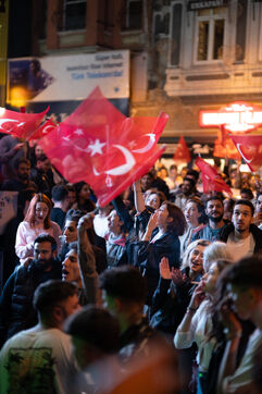 When the results, were announced people gathered in front of the CHP party headquarters in Besiktas to celebrate the historic victory of this opposition party across the country in the local elections against the ruling alliance. People celebrated also the relection of the mayor of Istanbul Imamoglu. The president Erdogan's AKP party suffered the worst defeat of its 22-year existence with the loss of the largest cities in Turkey.