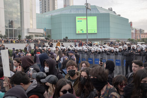 Des milliers de personnes se sont rassemblées à Istanbul la nuit dernière et ont été attaquées par la police avec des balles en caoutchouc et des gaz lacrymogènes. Aujourd'hui, le ministère de l'intérieur nous a appris que les autorités avaient arrêté 343 personnes à la suite de manifestations organisées dans tout le pays et que les comptes des médias sociaux de 63 organisations de gauche et d'étudiants avaient été bloqués depuis hier.