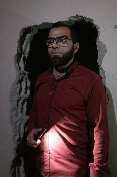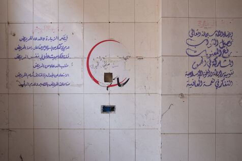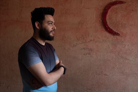 Ahmed al-Namer montre les mots écrits sur le mur de l'hôpital : « L'adieu, avril 2018 ». L'infirmier de 27 ans pensait ne jamais y revenir.