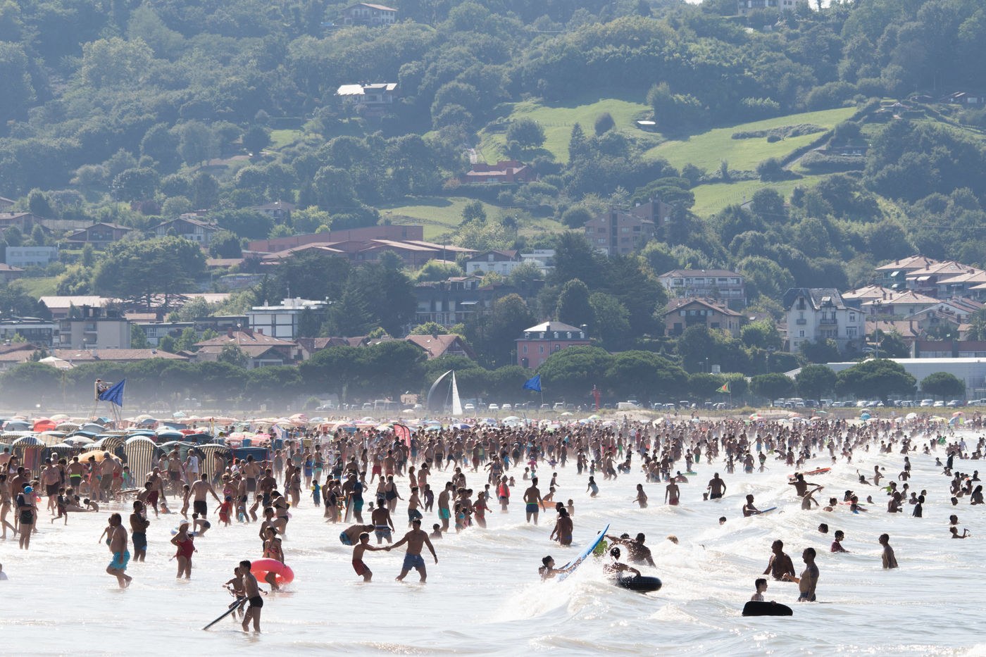 Vague de touristes un 11 Aout à la plage de Hendaye au Pays-Basque