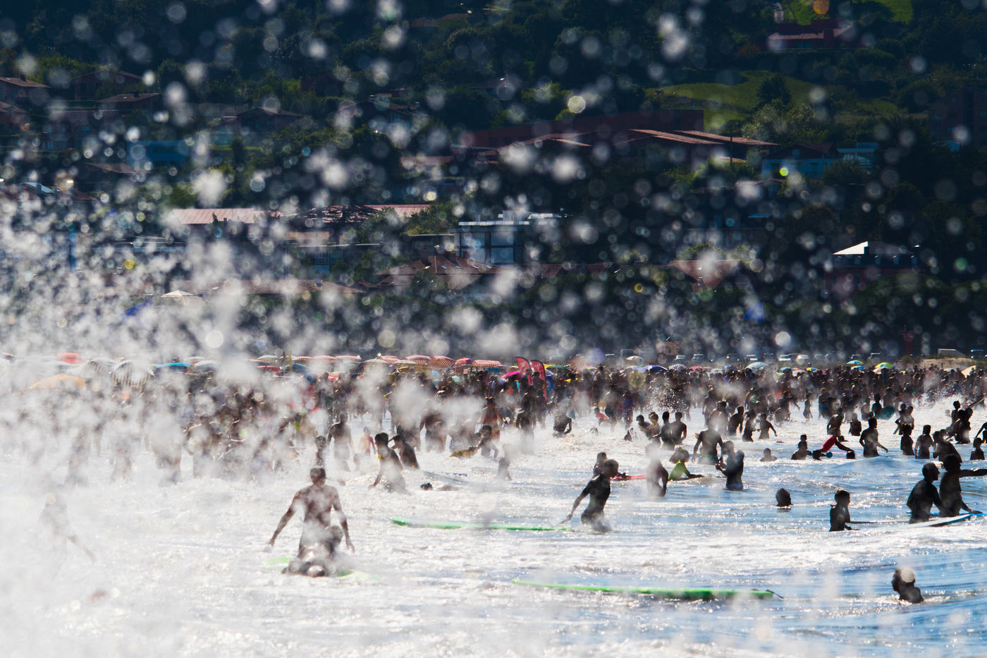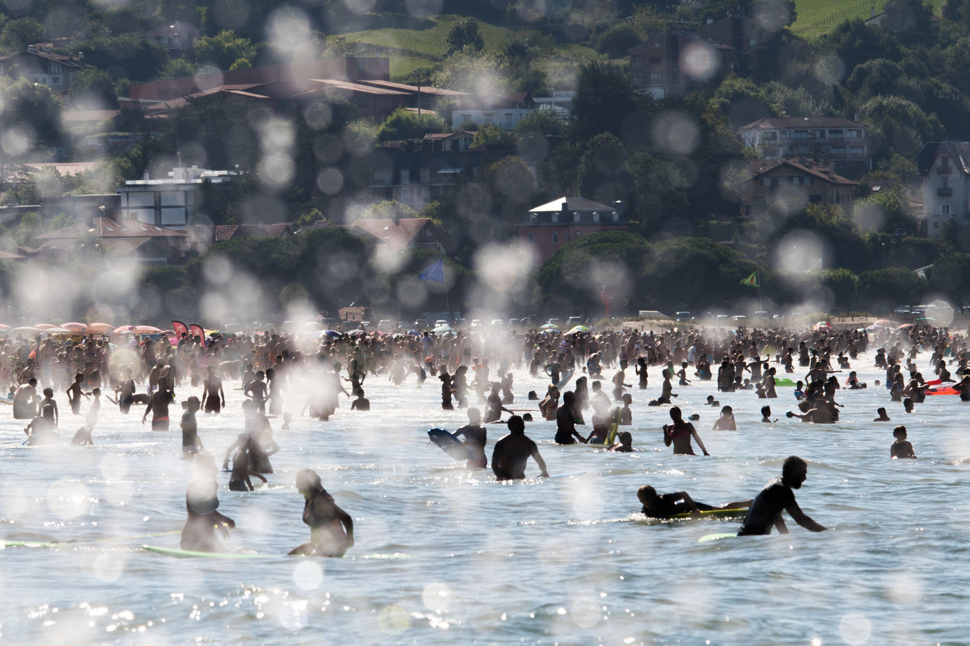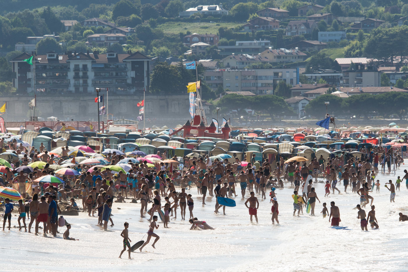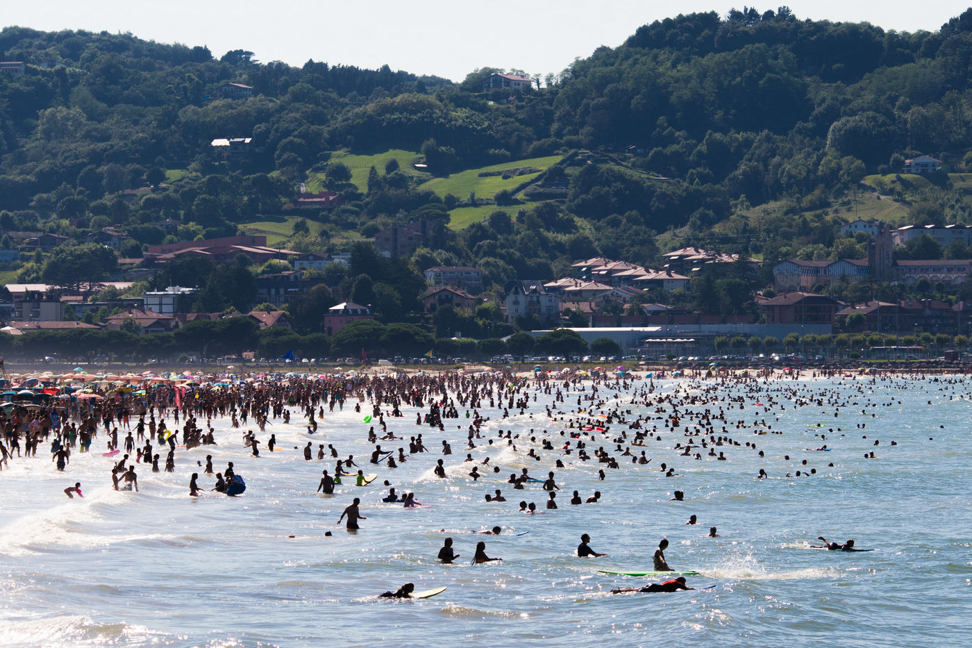 Tourist wave on August 11th at Hendaye beach in the Basque Country