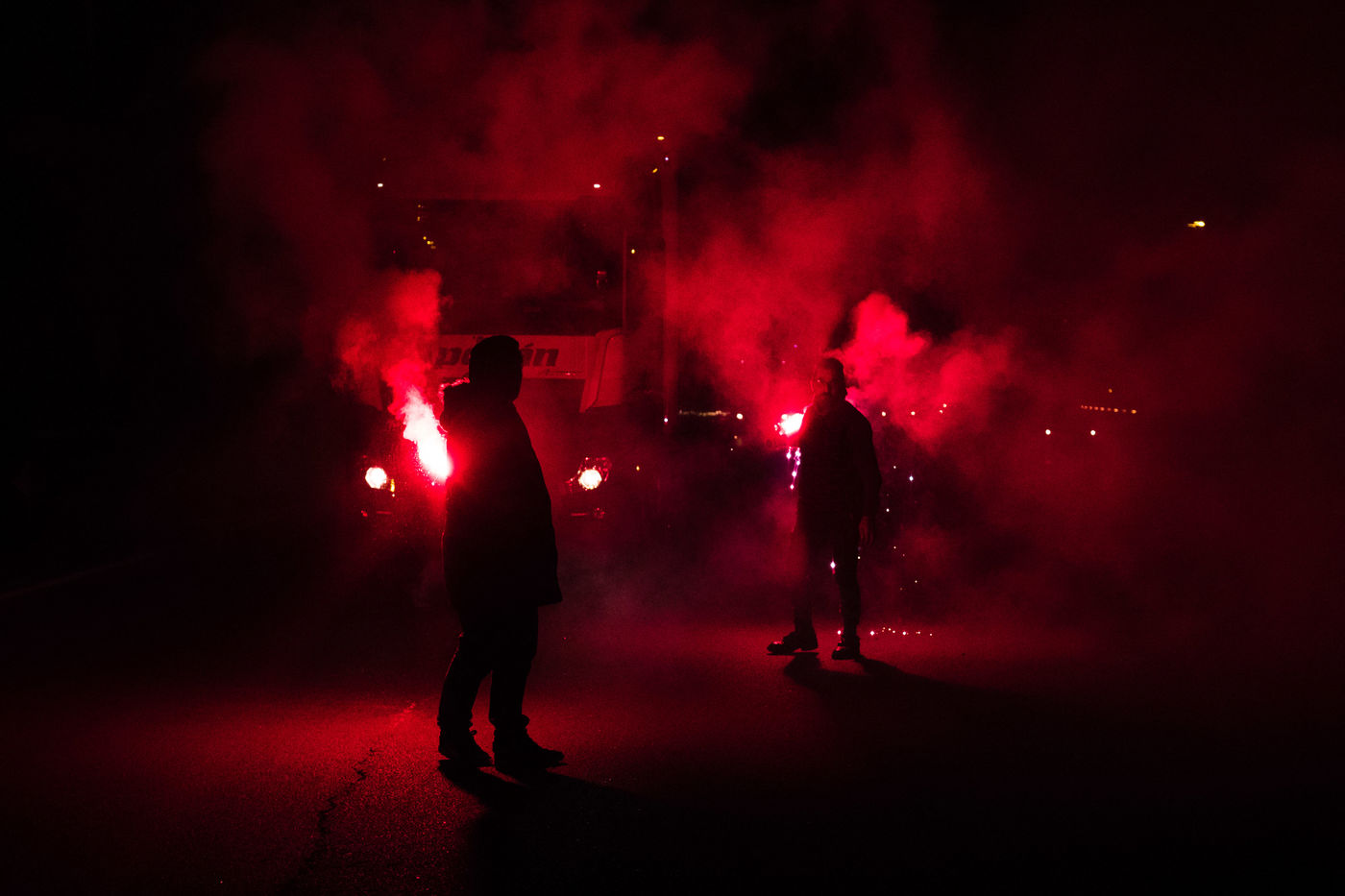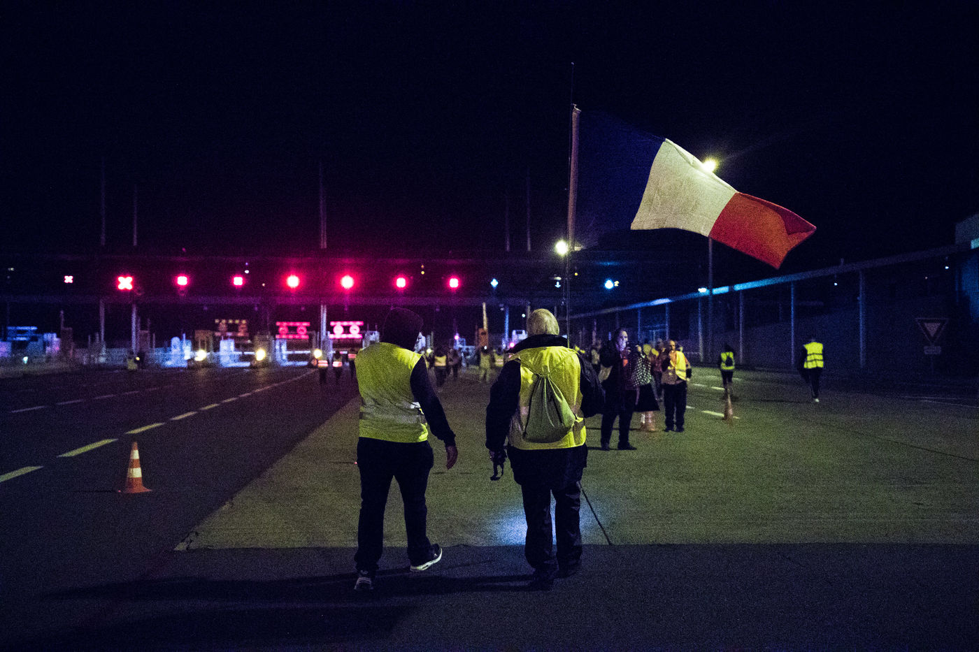 Wednesday evening, in Hendaye, yellow vests gather in Hendaye. They take their cars and make an appointment at the entrance to the A63 motorway, on the border with Spain. The demonstrators arrive on the tracks equipped with smoke in order to be spotted from afar by the trucks arriving, they line up blocks and the blockage can start on both sides of the border toll. The Spanish police set up a diversion of the trucks on the other side of the border and make the trucks pass through the French highway to avoid the blockage. The yellow vests decided to block the first access to the national road, forcing trucks to turn around on the Spanish side and cross the other border, but the blockage eventually set in at the other roundabout, which eventually blocked all traffic from Spain to France. However, cars can pass by but the trucks are at a standstill, some trucks even turn off the ignition and end up resting in their bunk waiting for the unlocking the next morning.
