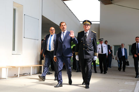 Biarritz, le 20 Août 2019, Christophe Castaner visite le poste de commadement interministeriel (PCI) accompagné du prefet des Pyrénées Atlantique Eric Spitz.