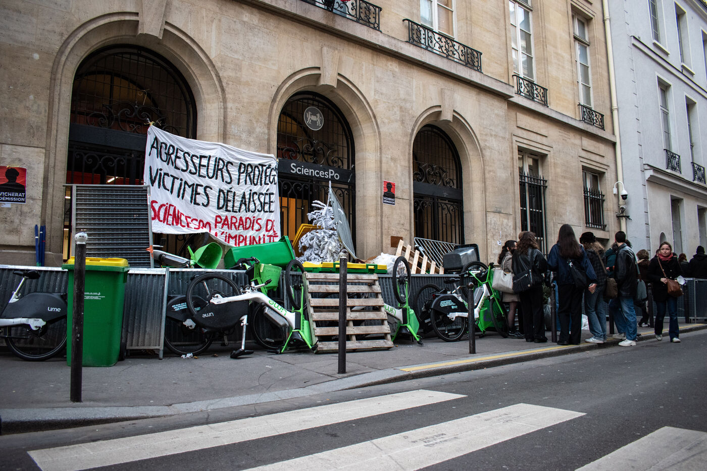 In response to allegations of domestic violence against his wife by the director of Sciences Po Paris, Mathias Vicherat, Sciences Po students blocked the entrances to the school's buildings, preventing classes from taking place and demanding Mathias Vicherat's departure.