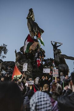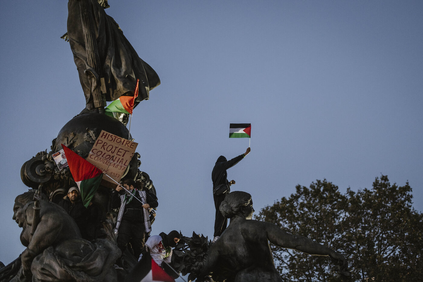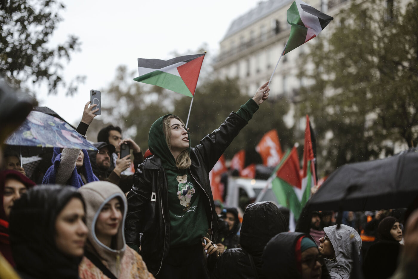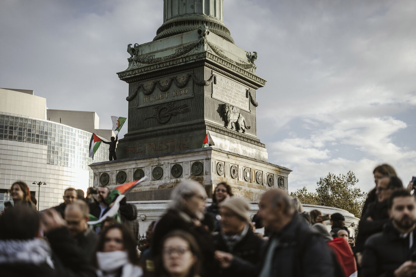 Différents slogans appelant à un "cessez le feu" et à arrêter le "genocide" et le "massacre" fleurissaient sur les pancartes dans la foule compacte qui marchait de la République jusqu'à la Nation, à Paris, ce samedi 4 novembre 2024. Plusieurs dizaines de milliers de personnes se sont déplacées, malgré la pluie en début de parcours, pour exprimer leur soutien au peuple palestinien et appeler à la paix et à un cessez le feu immédiat à Gaza. Presque un mois après le début du conflit, il s'agit de la première manifestation en soutien au peuple palestinien autorisée par la préfecture. Selon l'association Save the Children, près de 3800 enfants auraient été tués à Gaza en 3 semaines de conflits, c'est plus que la totalité des enfants victimes en zone de conflit depuis 2019.